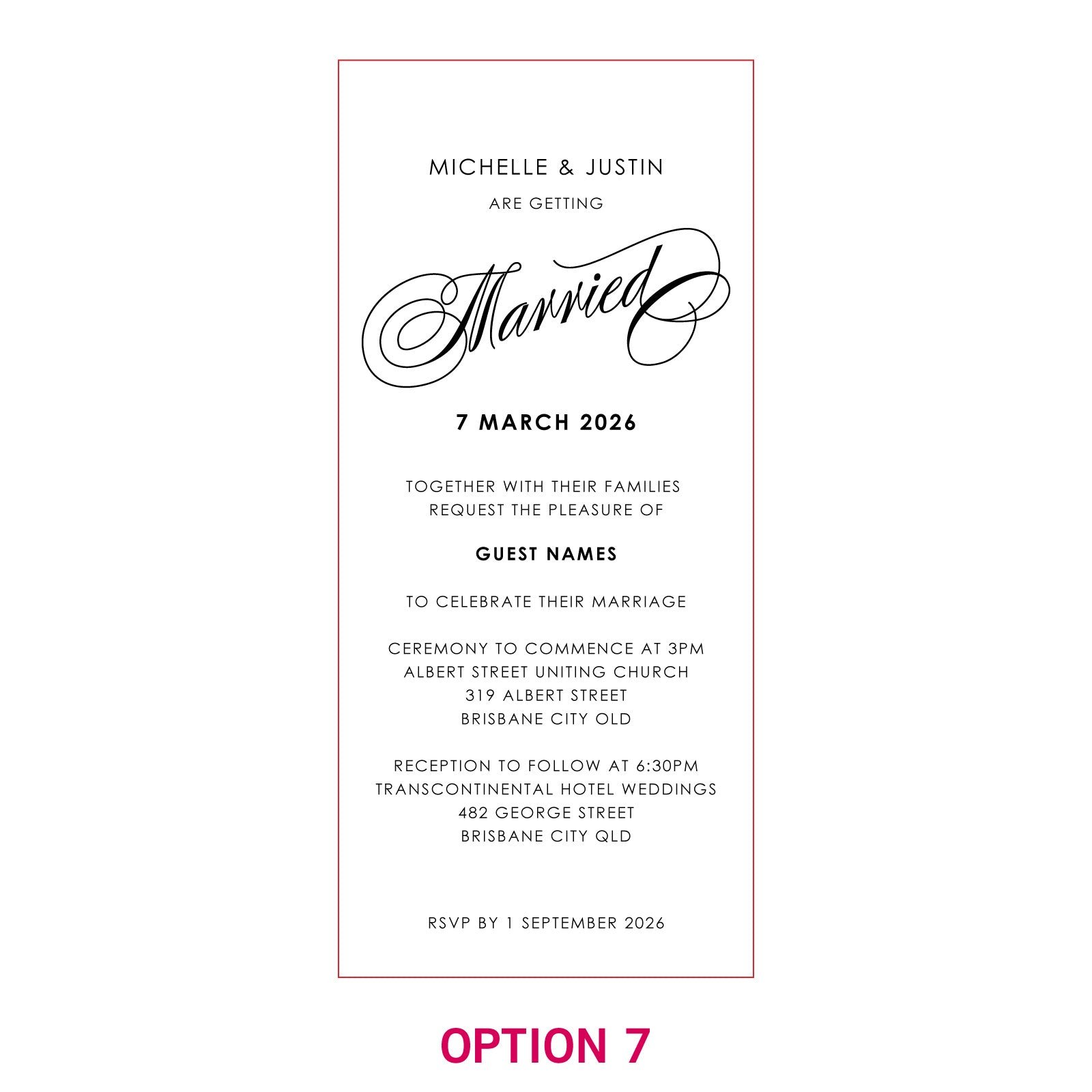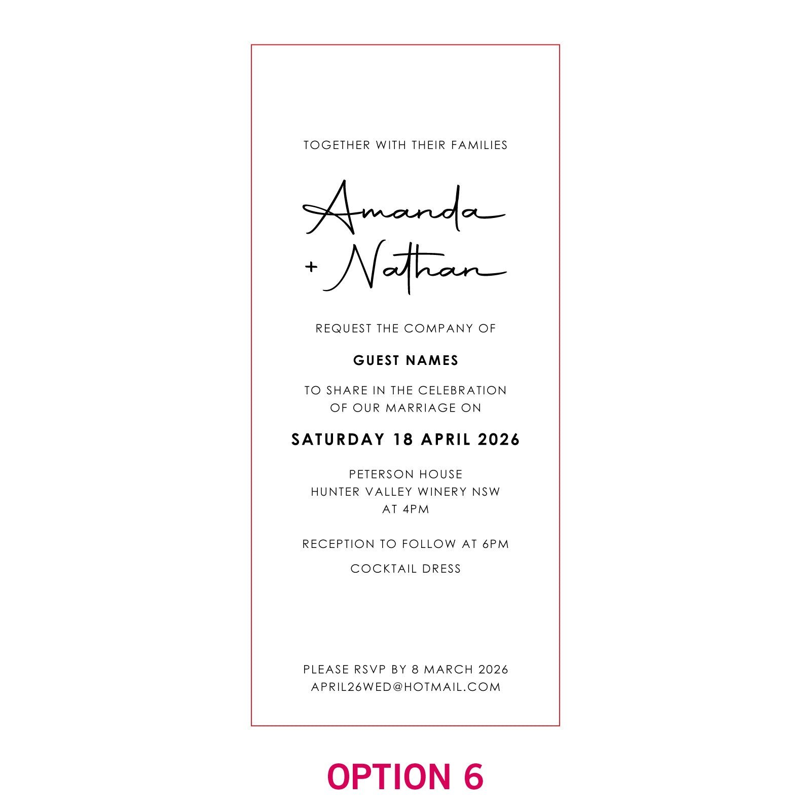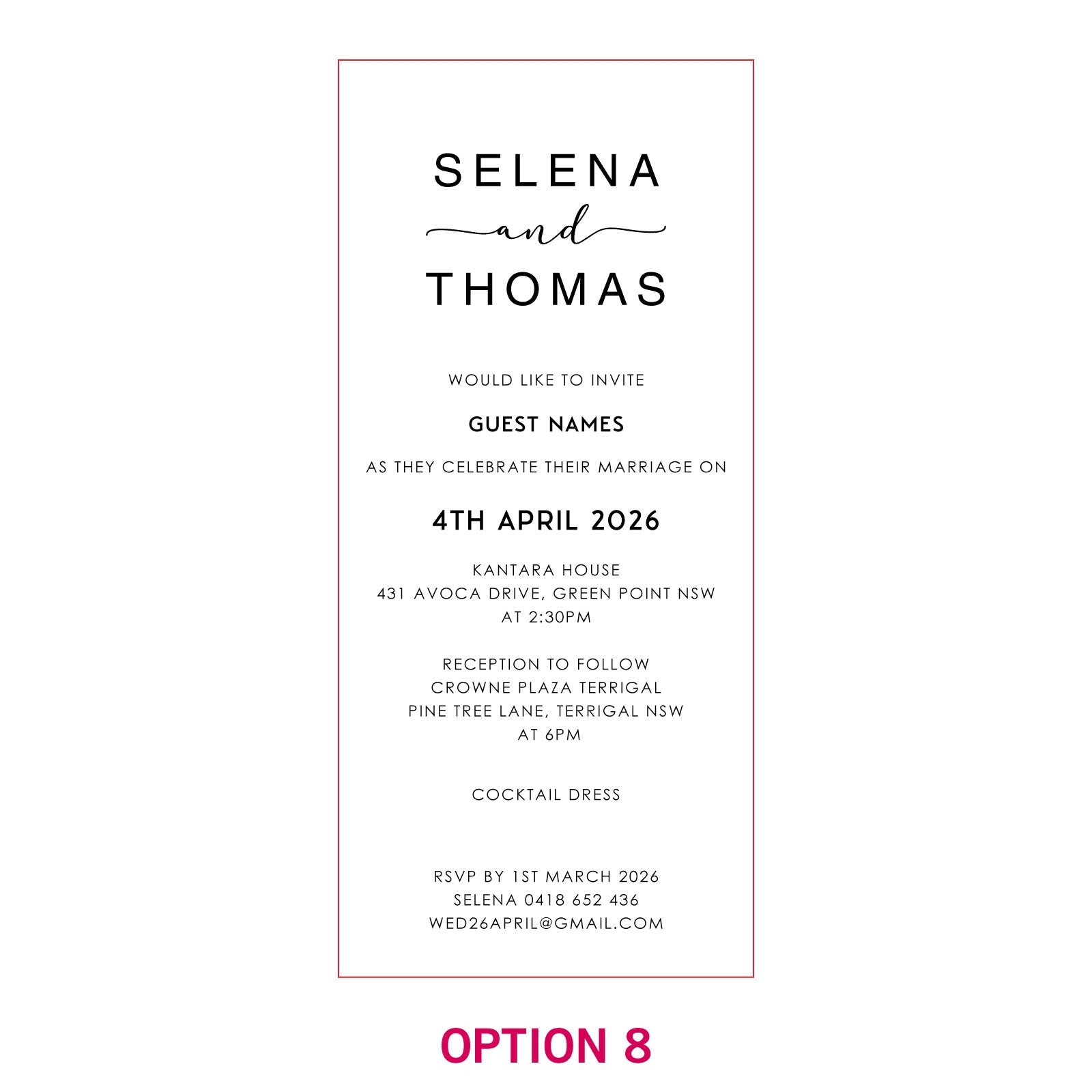 These customised invitations all come with DL Kraft envelopes. and matching RSVP and Wishing Well cards can also be purchased at an additional cost.