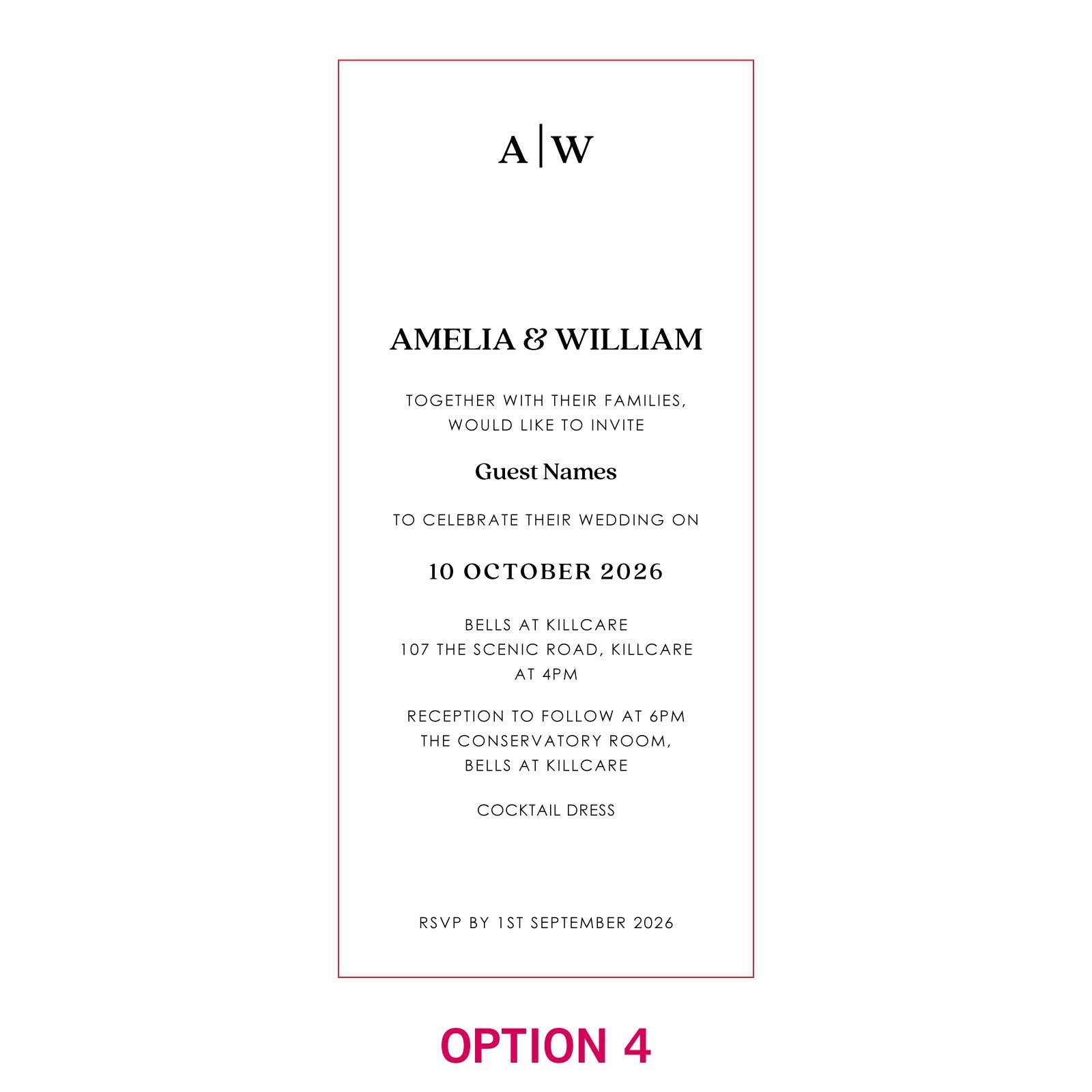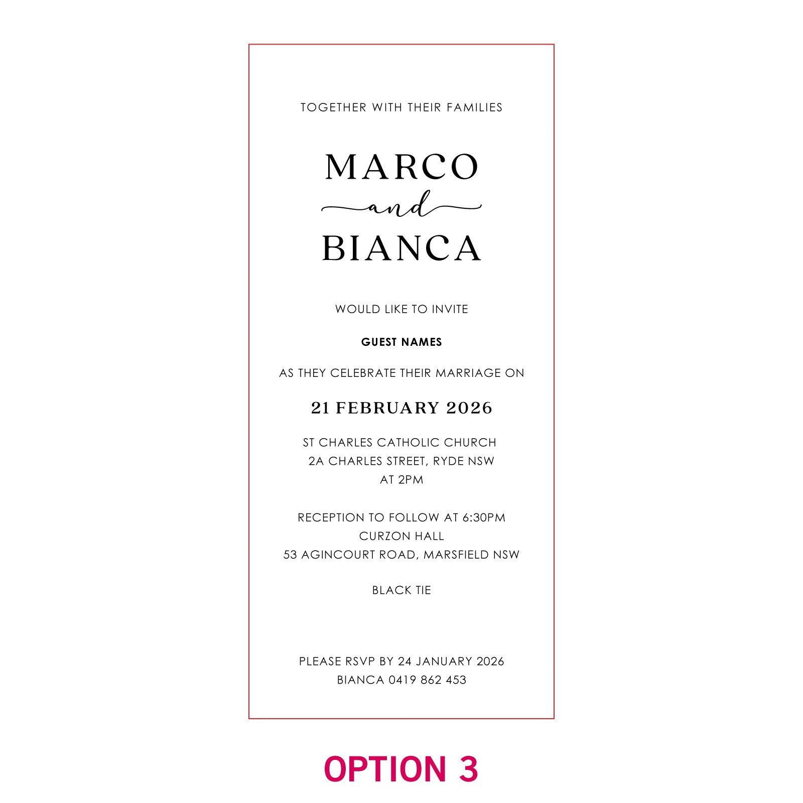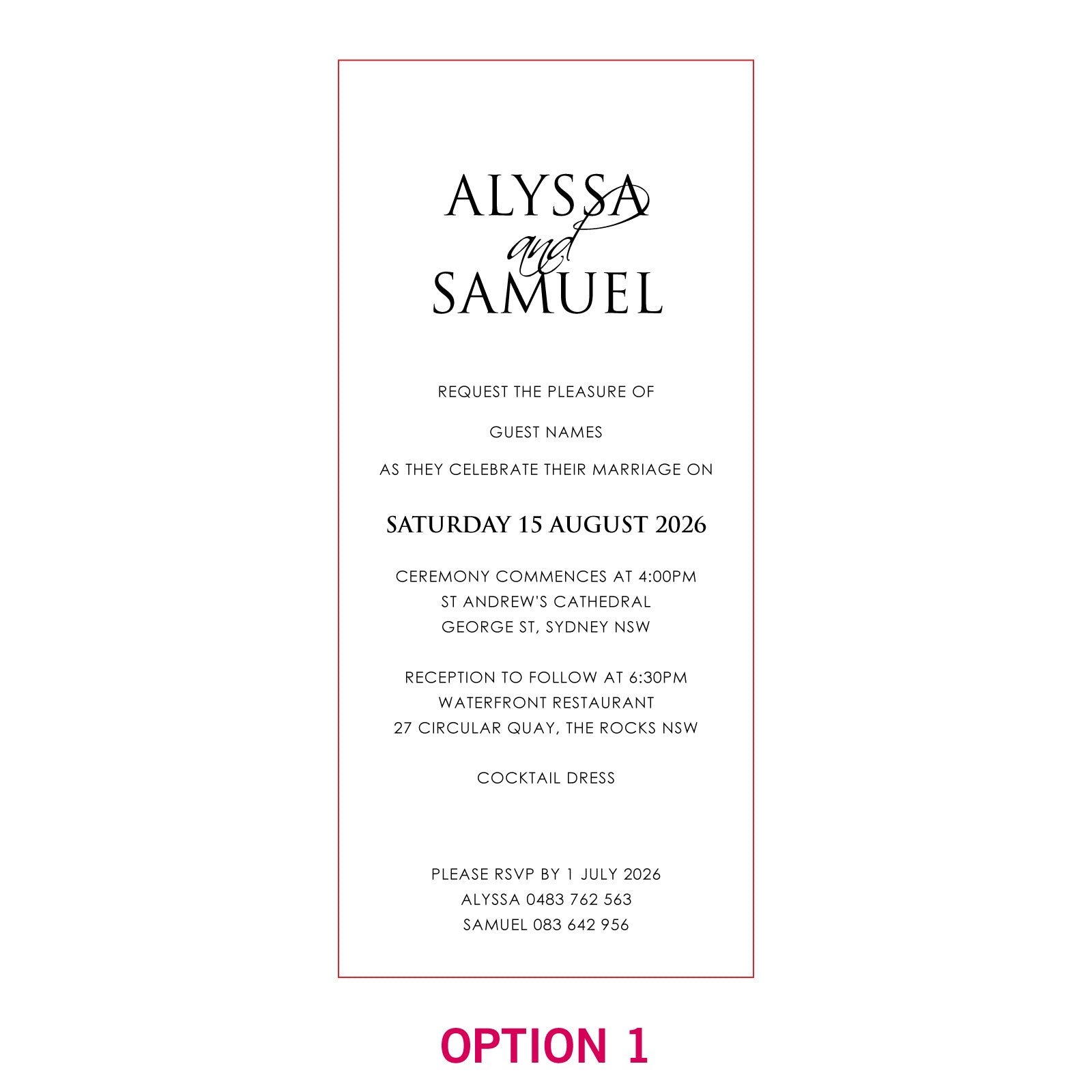 These customised invitations all come with DL Kraft envelopes. and matching RSVP and Wishing Well cards can also be purchased at an additional cost.