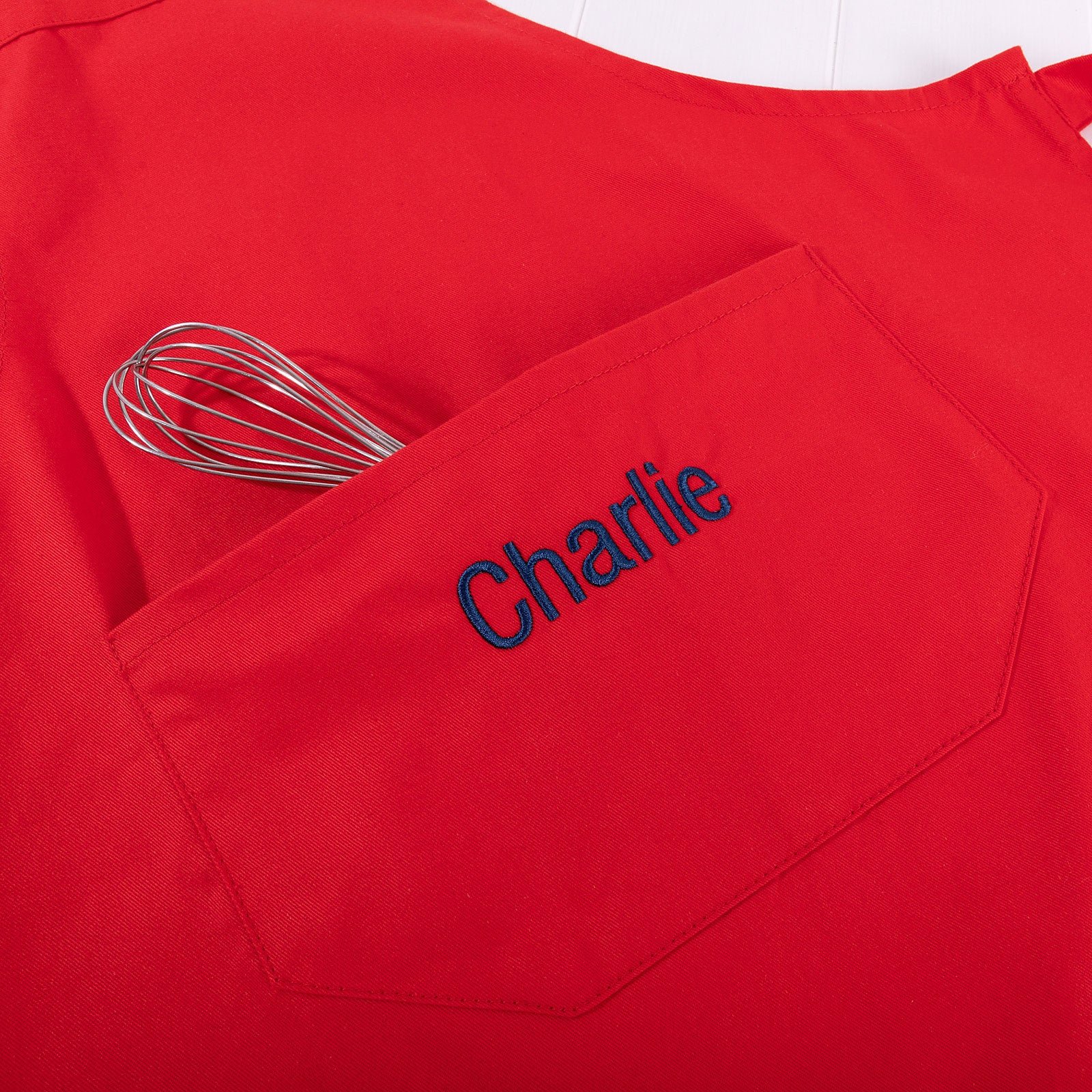 Prepare your little chef for kitchen adventures with our personalised apron. Embroidered with your child’s name or nickname. this apron is designed to be truly theirs. Made from durable 260gsm cotton twill. it includes a large slip pocket for handy storage and a velcro safety release on the neck strap for added security.Â