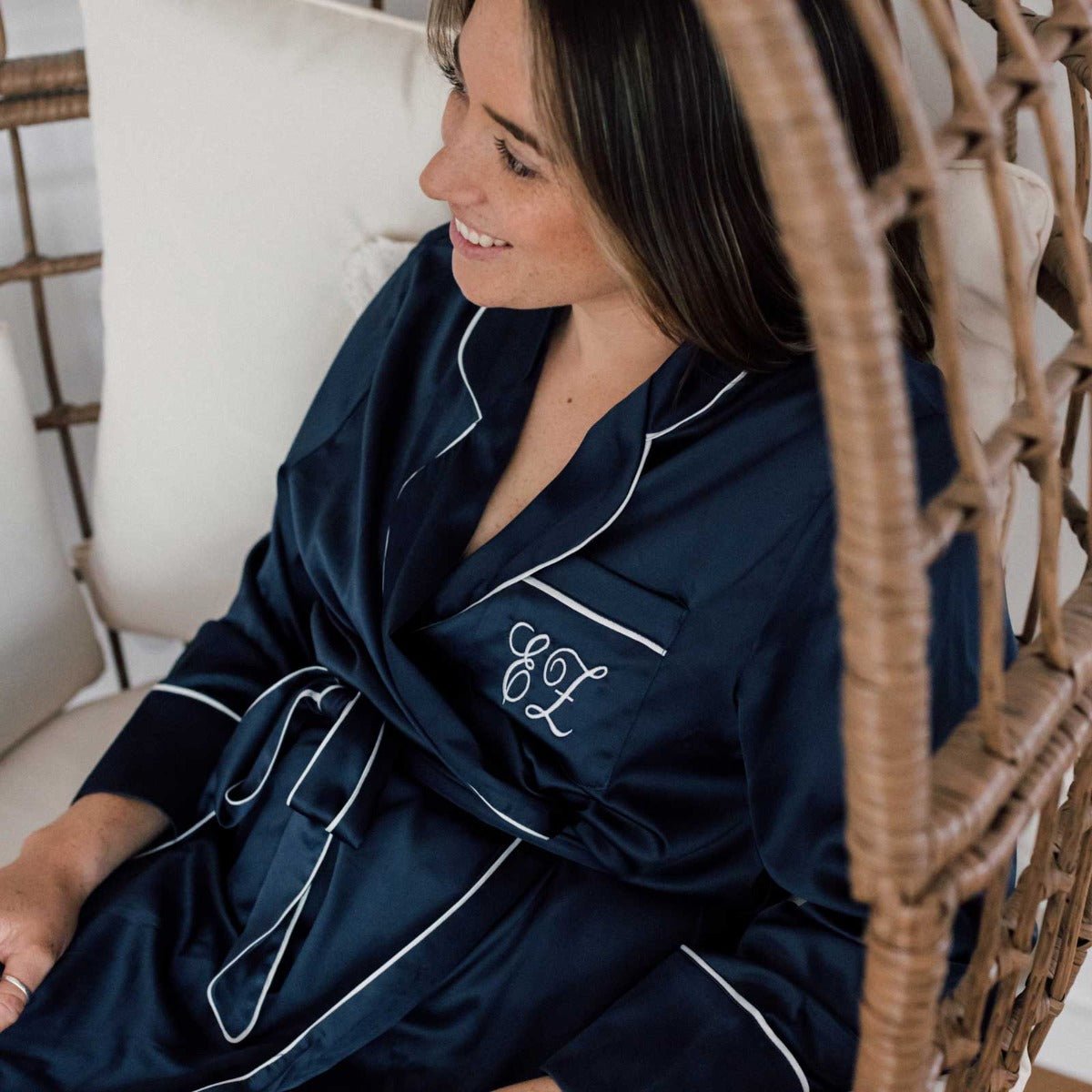 With your own initials expertly embroidered by our team in the same contrasting colour as the stylish piping details. you’ll feel like pure class when throwing this super silky. luxurious robe over your shoulders.