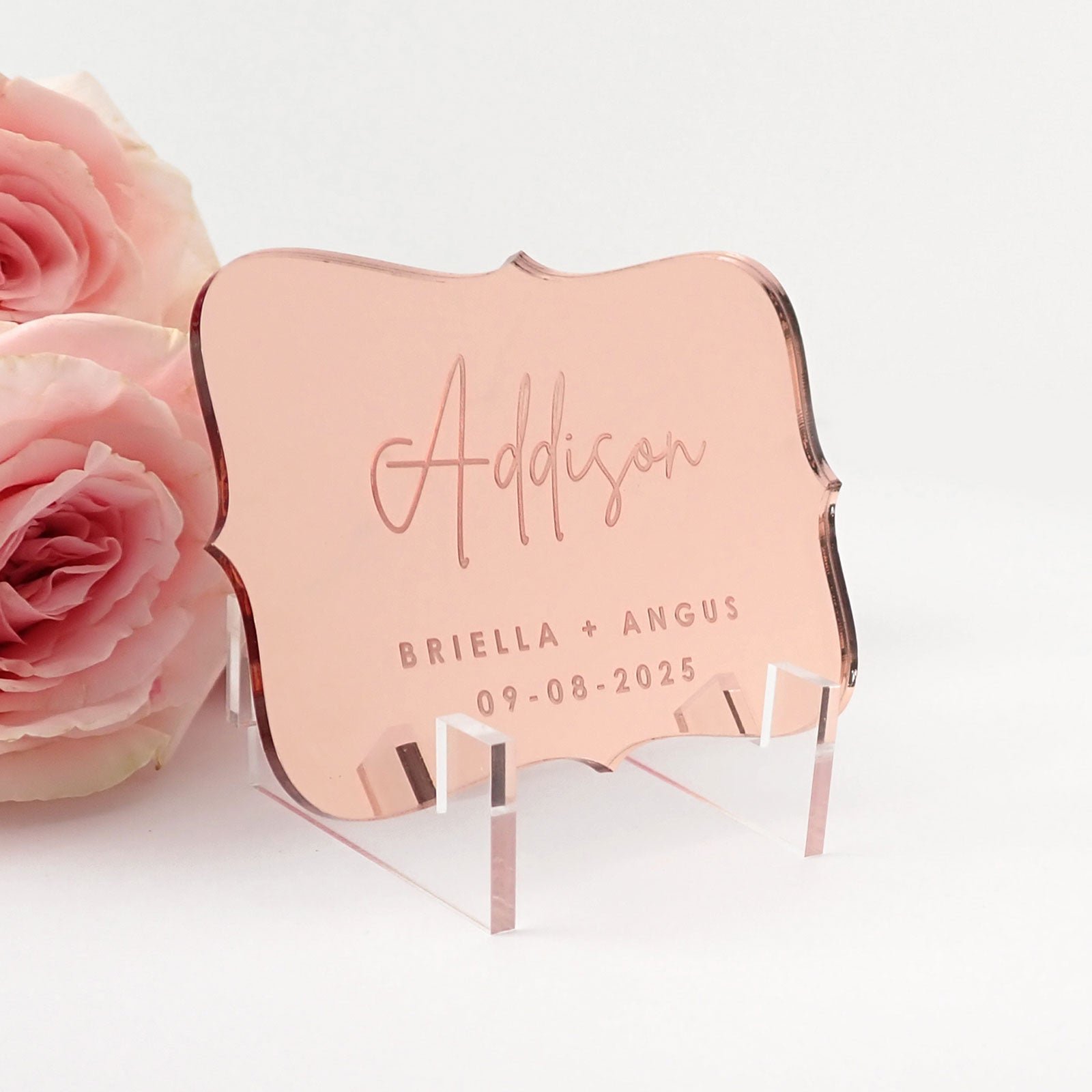 These elegant acrylic place cards are professionally laser cut. and are a unique way to ensure your guests can easily find their place at your wedding venue.