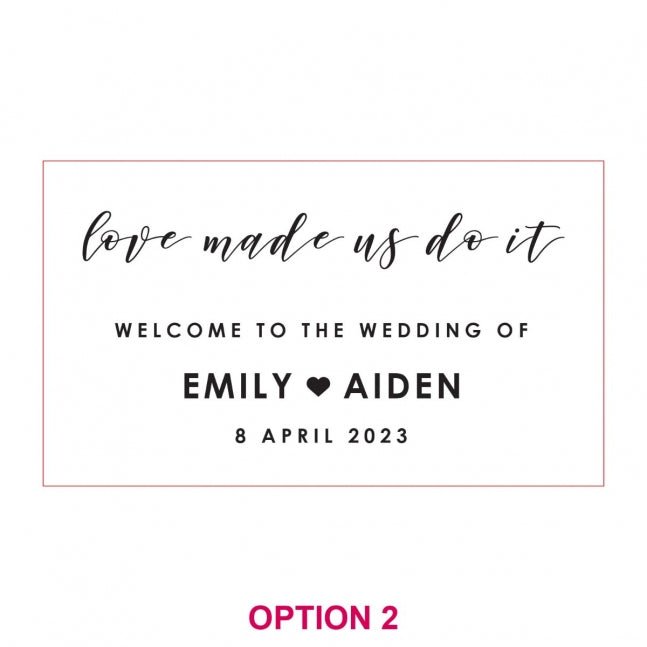 Personalise this wedding statement piece with your choice of artwork. font or design from a range of popular styles or create your own entirely to reflect your unique couple identity.