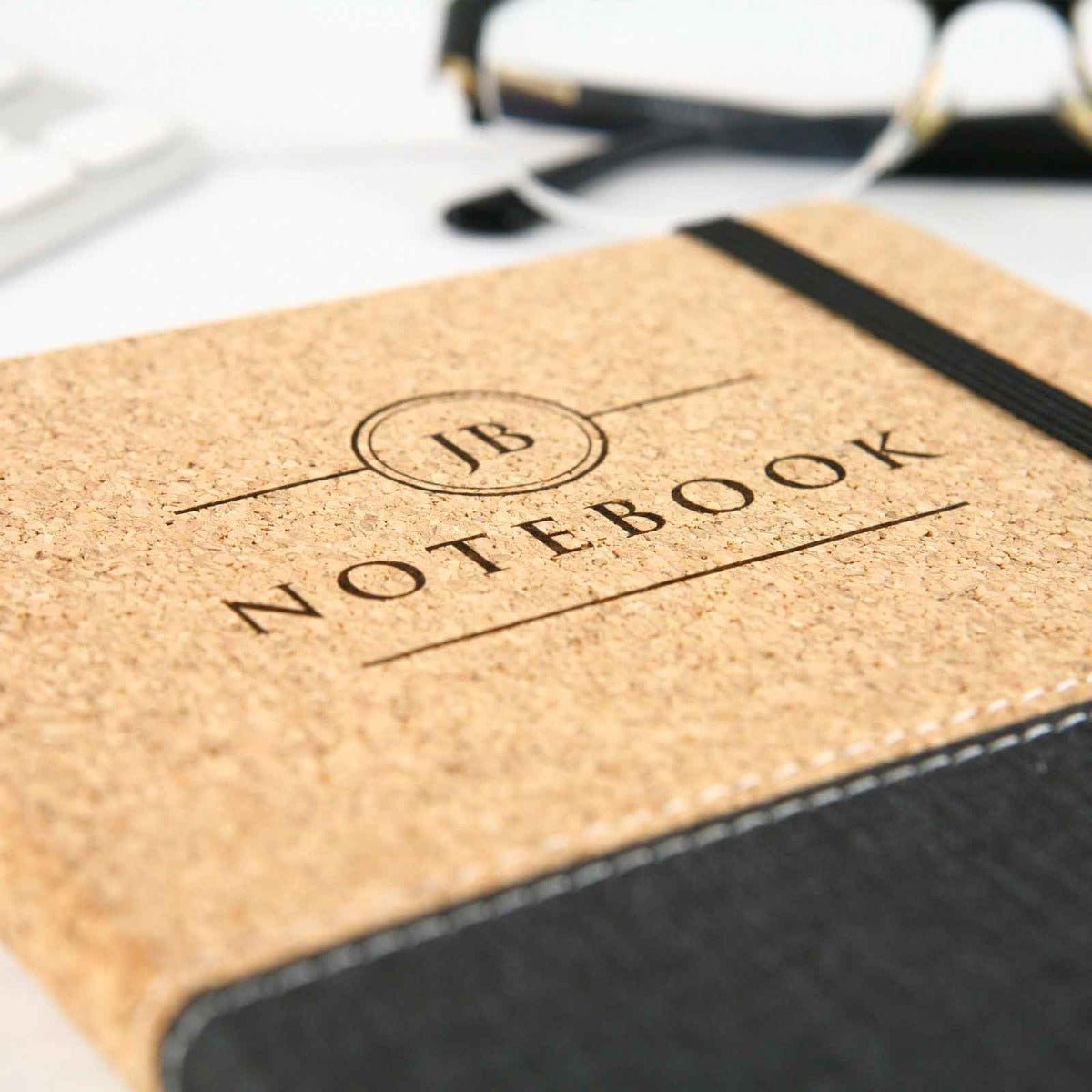 Professionally engraved on the cork section of the notebook. there are multiple design options and the inscription can include the recipient’s name. a quote or a special message. Â