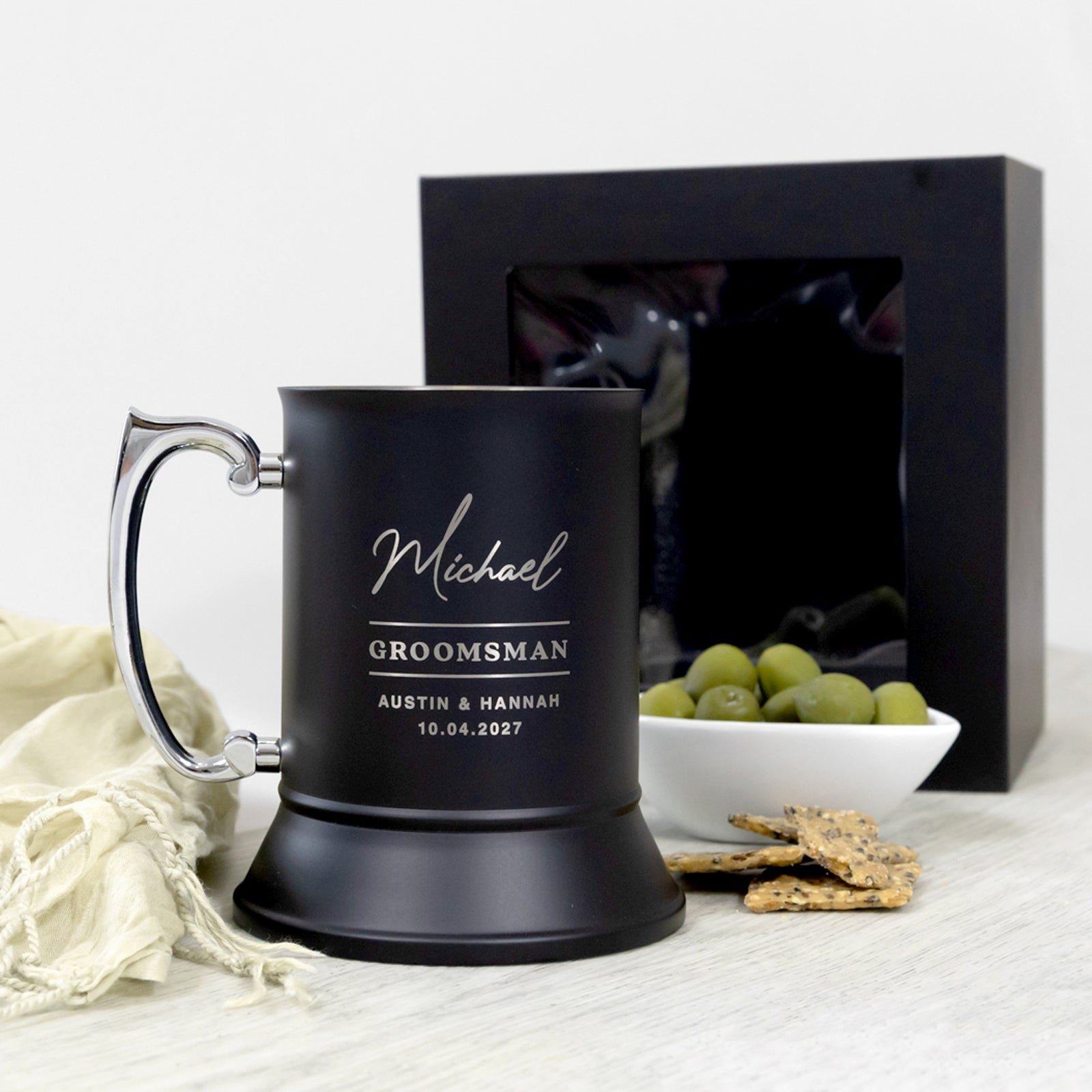 Each mug is presented in a premium black gift box. making it a hassle-free and impressive gift. Perfect for toasting the big day. this custom beer mug is a lasting reminder of a special celebration. Cheers to a gift that’s both meaningful and functional!