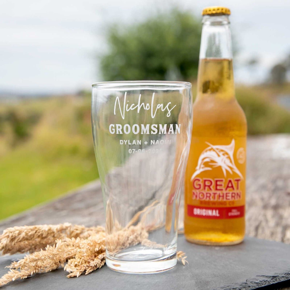 Raise a toast to unforgettable moments with our engraved Bridal Party beer glass – the ultimate vessel for celebrating love and camaraderie.