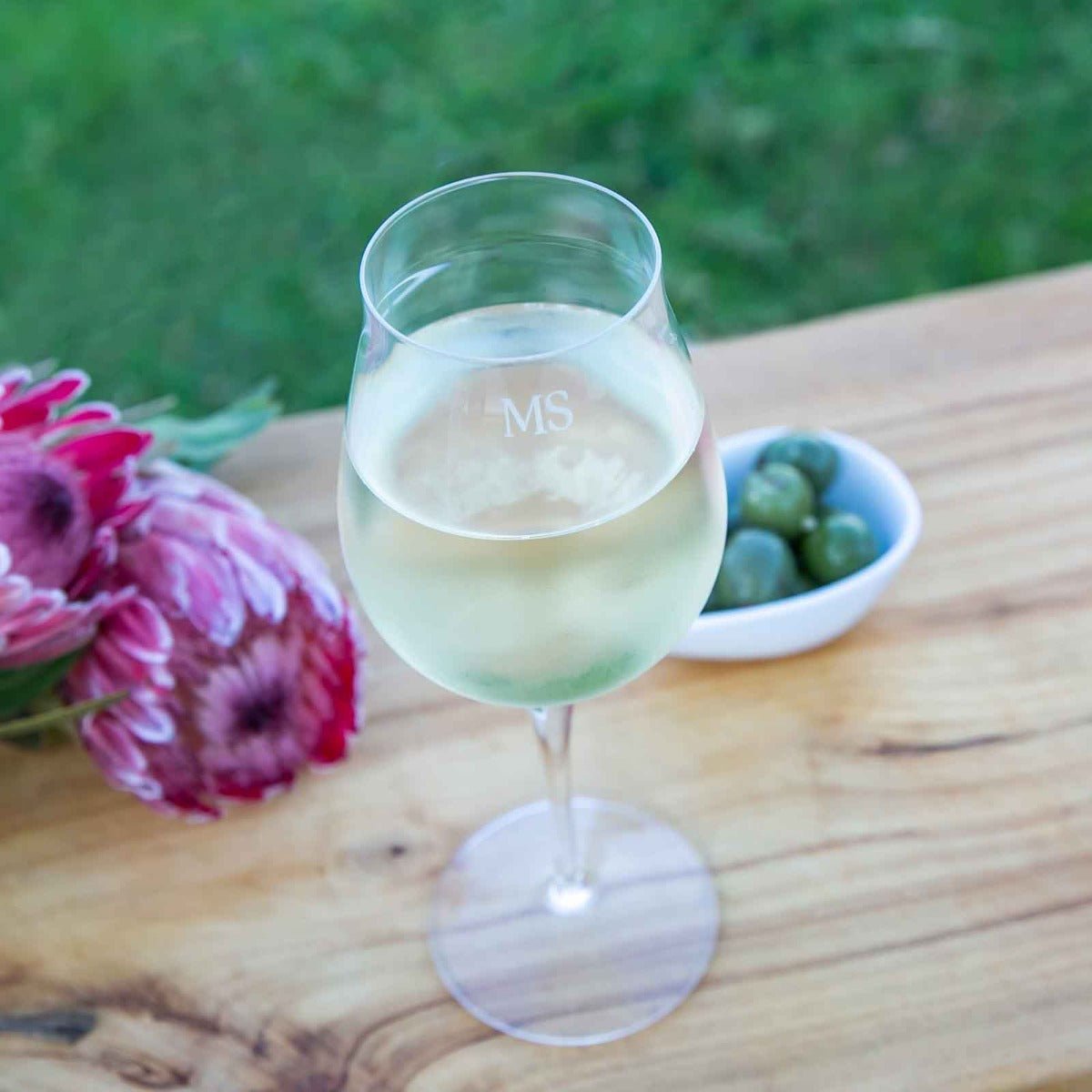 Hosting a handy 350ml of your favourite sip. your new Classic Contour Glass comes beautifully finished with our inclusive laser engraving service to personalise with your choice of two letter initials. The perfect gift to accompany their favourite bottle of wine for birthday’s. Christmas. Engagement or Wedding gifts.