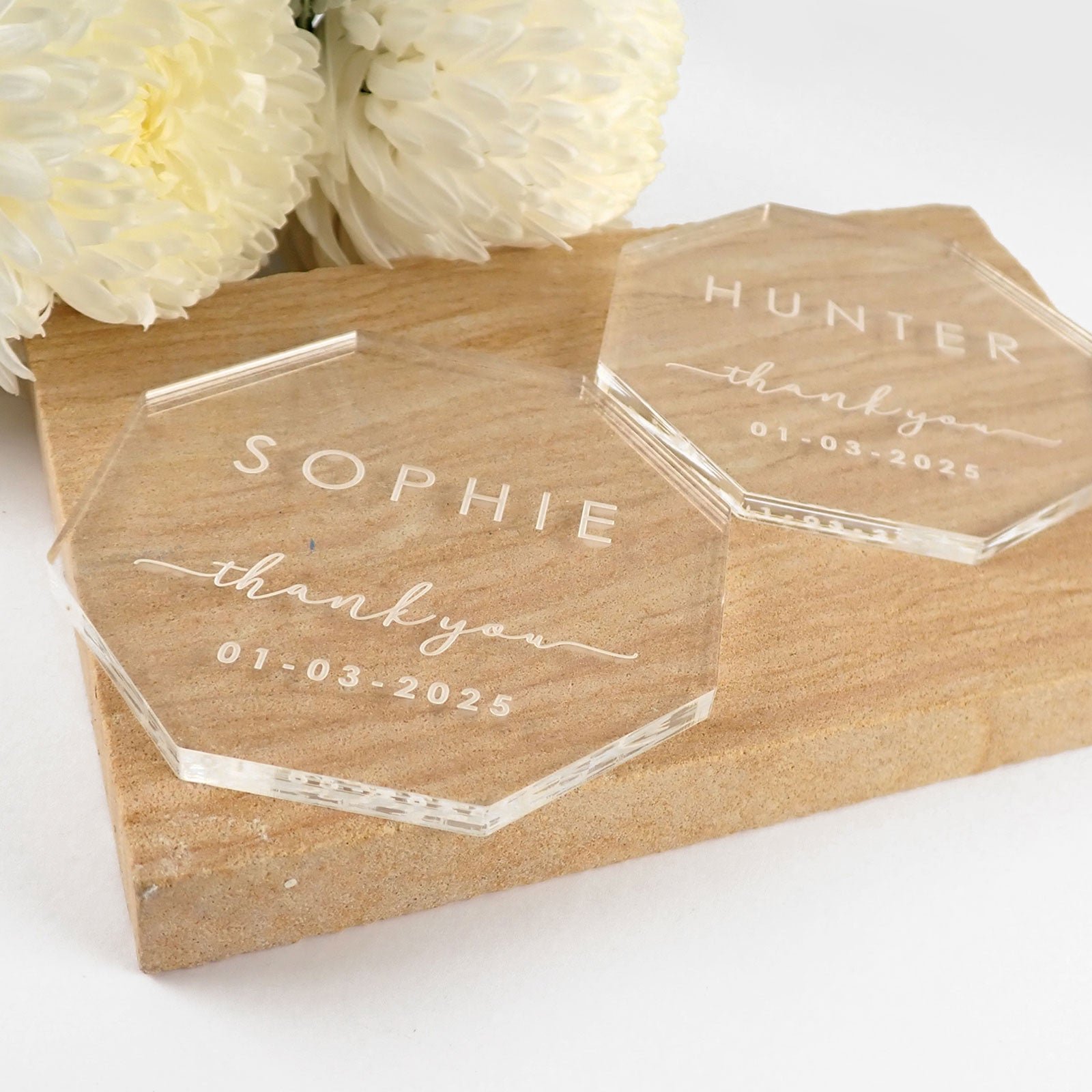 Engraved Clear Acrylic Wedding Octagon Coaster Place Cards