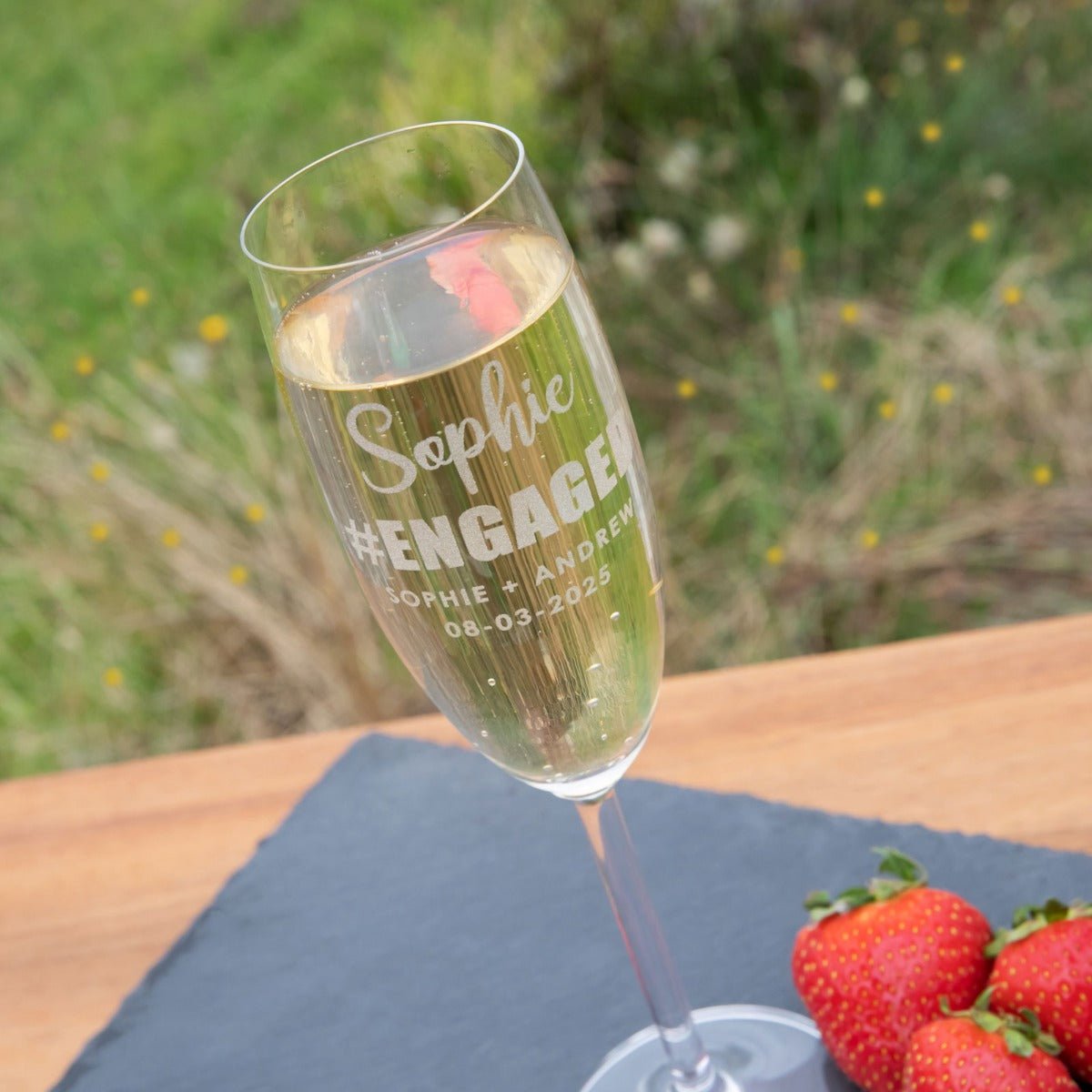And what better way to impress your other half or the happy couple. by pouring those bubbles into their very own custom-engraved champagne glass?