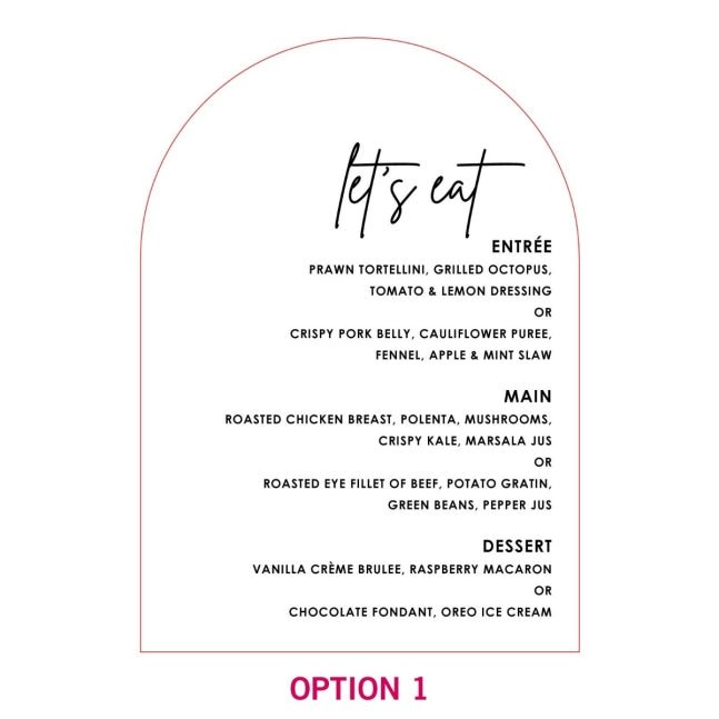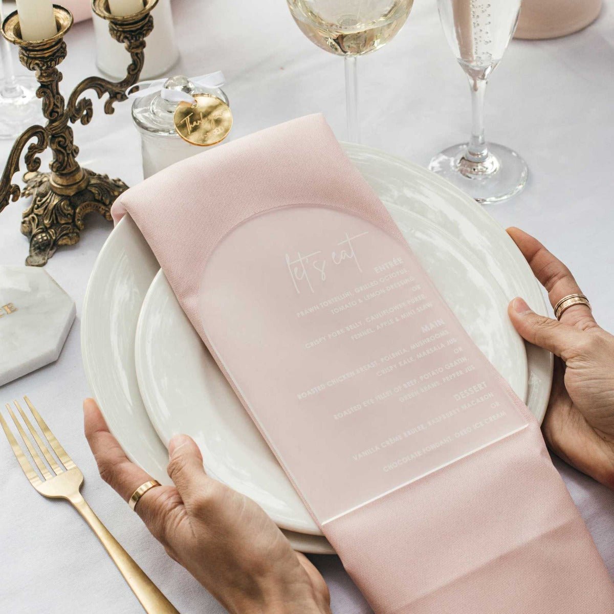 Whet your appetite with our chic frosted acrylic wedding menus.