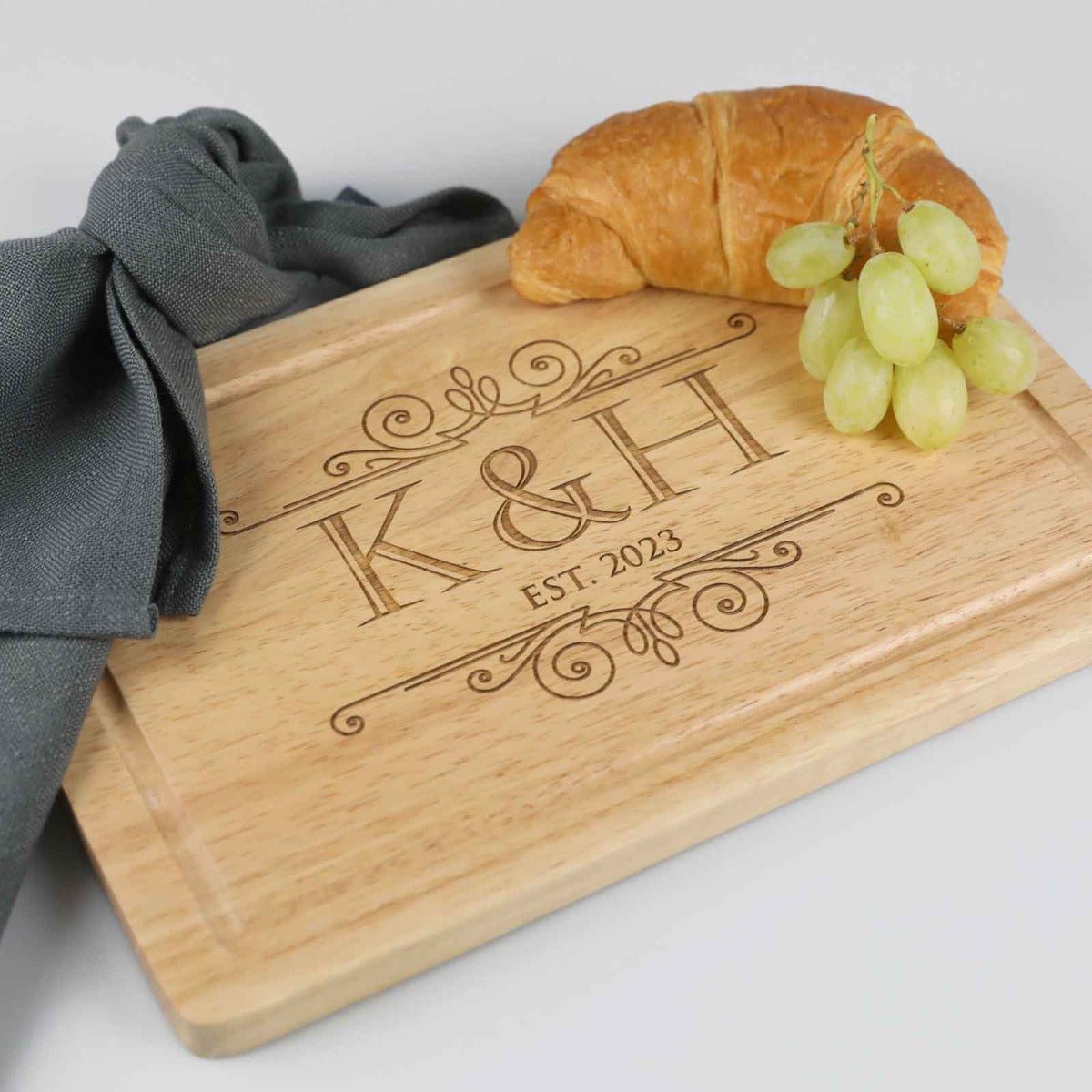 Crafted from light natural wood. it’s classic rectangular shape features a drip groove border for practicality and style. Customise the board with your choice of design and create a personalised gift uniquely designed for the recipient.