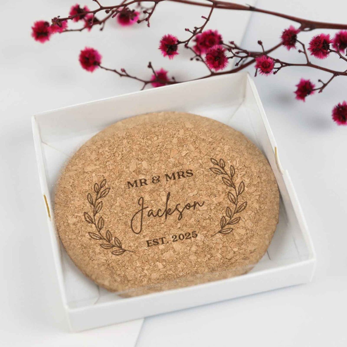 If you’re looking for a stylish wedding favour for your wedding guests. then look no further. This engraved wedding cork coaster is the ideal wedding favour or gift.