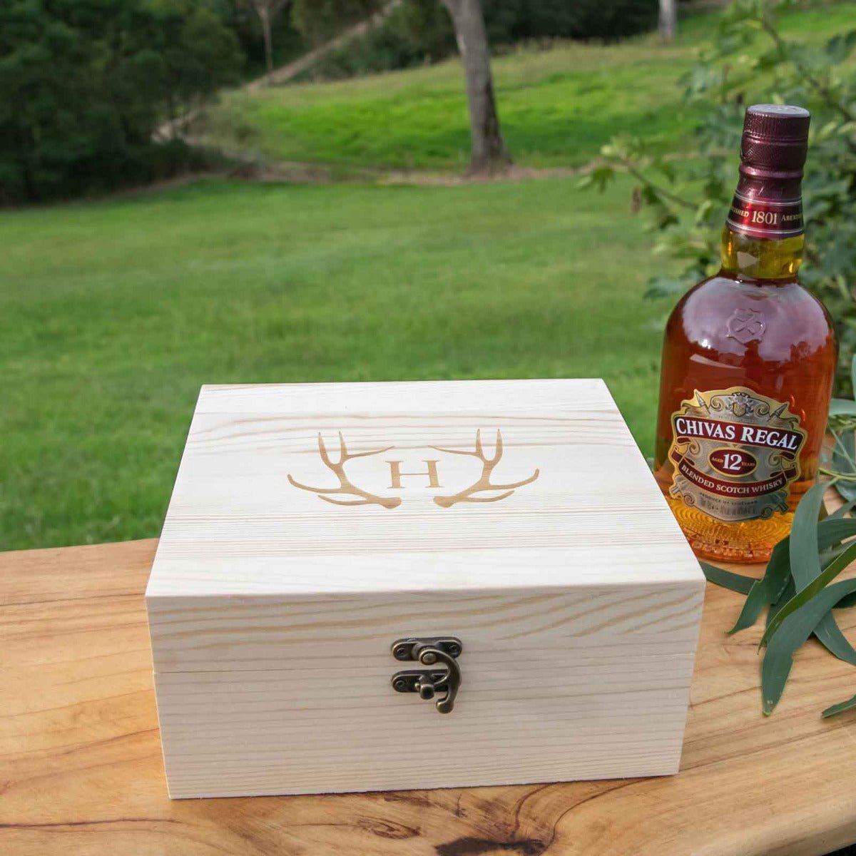 This effortless and elegant ready to go gift has everything needed to get the celebrations started. with all the wow-factor to boot. Two matching round and custom engraved scotch glasses. nestled in a professionally crafted wooden engraved box. complete with eight whiskey stones for some good old-fashioned fun. A timeless signature gift to be treasured and appreciated long after the party has ended.