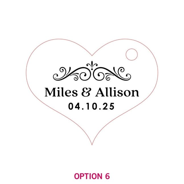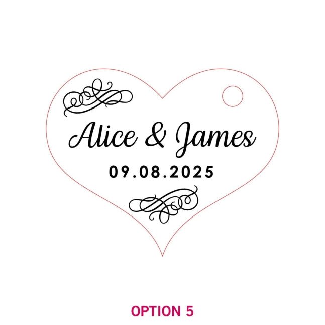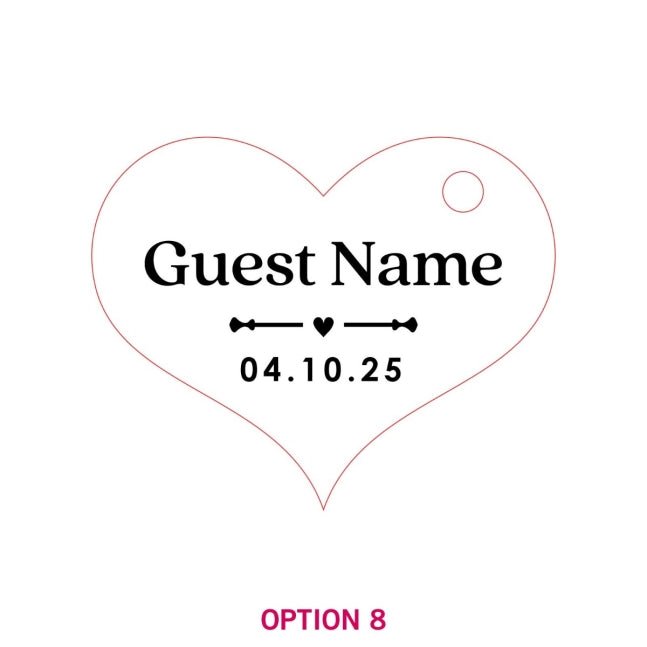 Add a special. personalised touch to your wedding with engraved wooden. heart-shaped gift tags. Style them on an individual table. or leave one favour at each guest’s seat – you can even add individual guest names to each piece for a small additional fee.