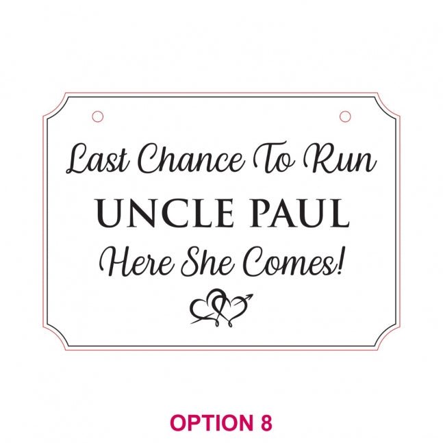 These signs always make for great photos on your special day. and each one comes with woven cord. so it can be carried or worn round the neck.Â