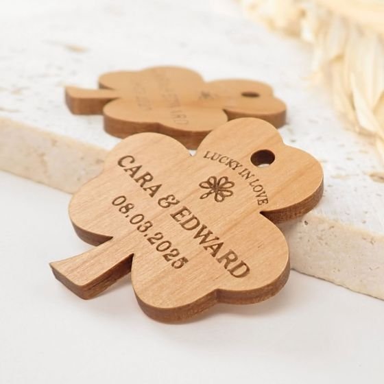 Who doesn’t need a good omen on their wedding day? Give your friends and family a little luck of the Irish with this special wooden shamrock gift tag.