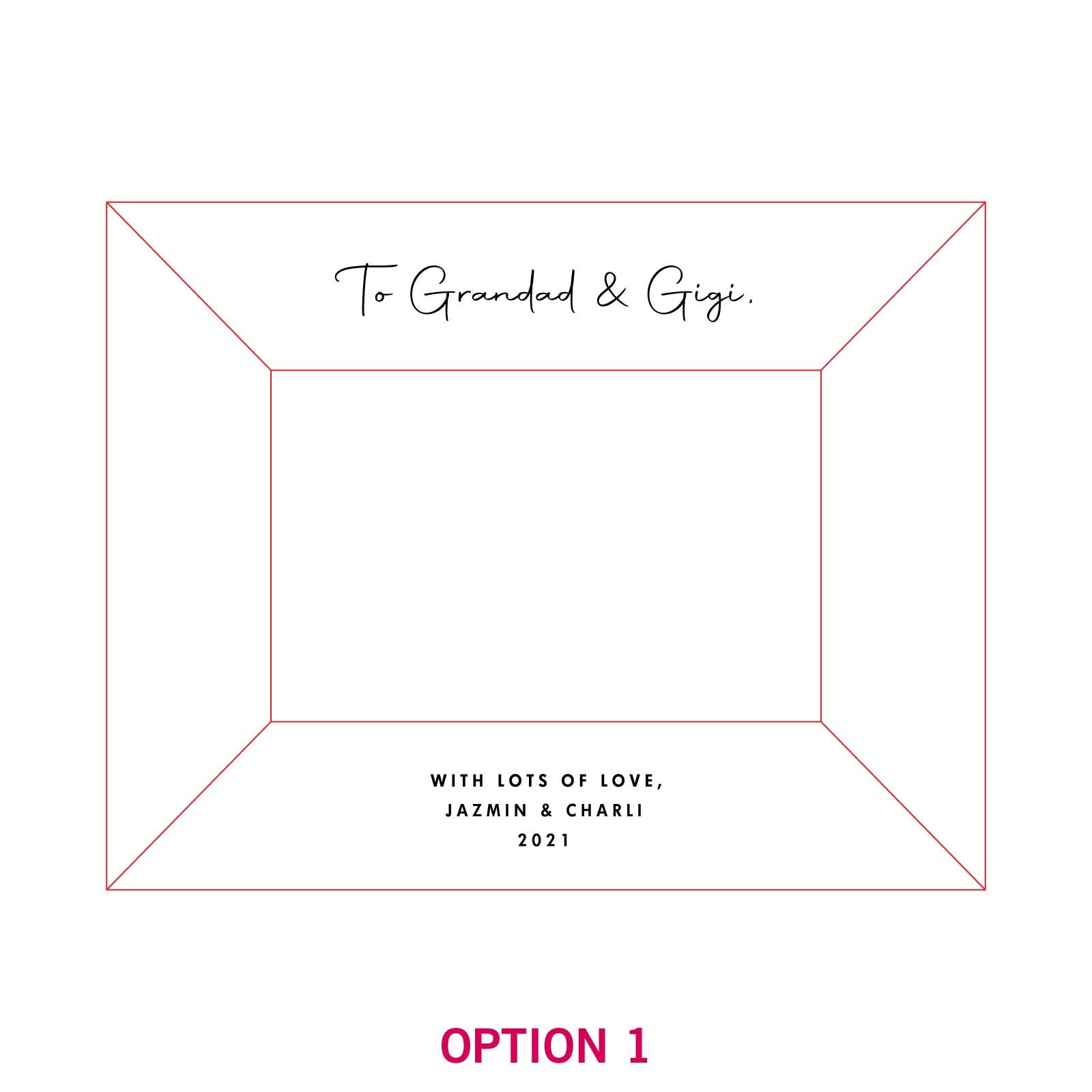 A beautiful memento to gift for any celebratory occasion. it particularly lends itself to birthdays. Christmas. Mother’s or Father’s Day and to exhibit a beloved pet. With the addition of your personal details and message. professionally laser engraved on the top and bottom of the frame. you will have created a sentimentally unique present.