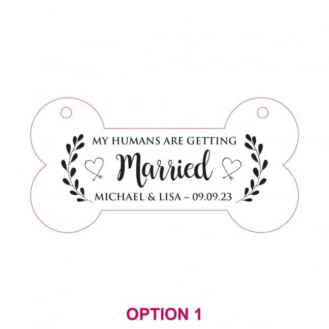 Include your fur baby in your special day. with a personalised wooden wedding pet sign they can wear with pride.