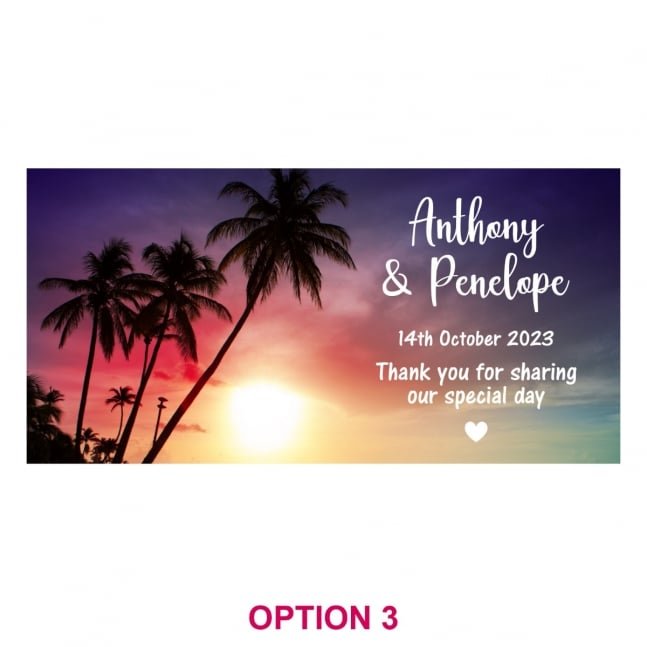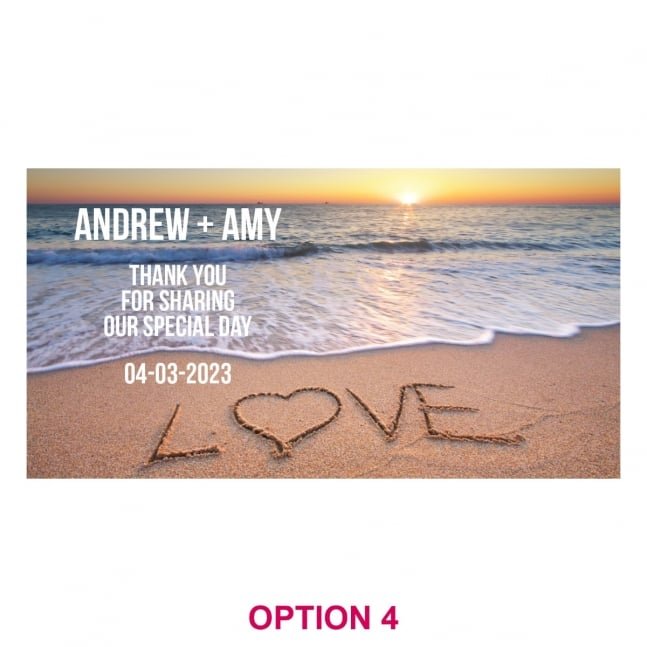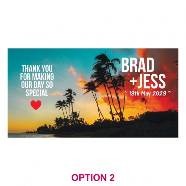 Select your funny or heartfelt message to be printed over the photo for a practical. fun and cost-effective wedding favour.
