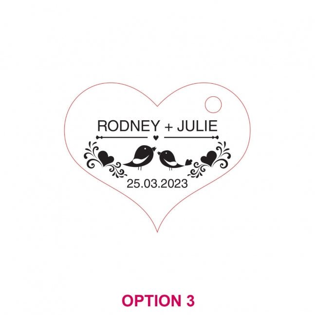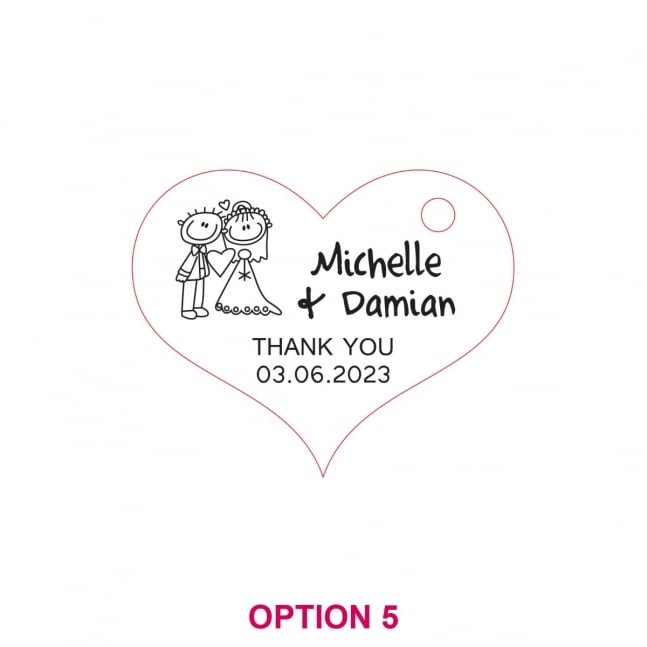 They feature a sweet drawstring and matching wooden heart-shaped gift tag. which can be personalised with the happy couple’s names and wedding date.