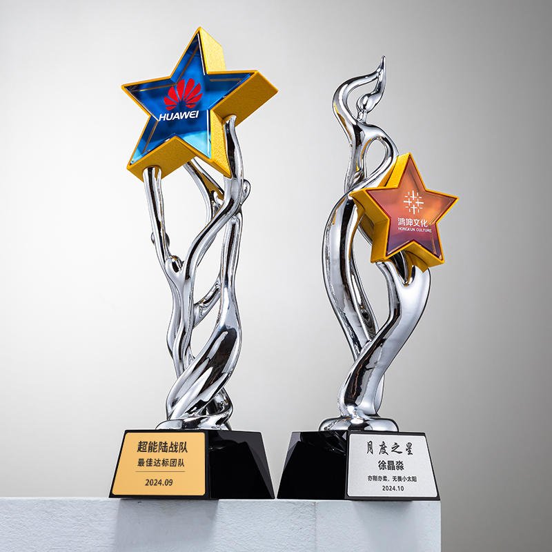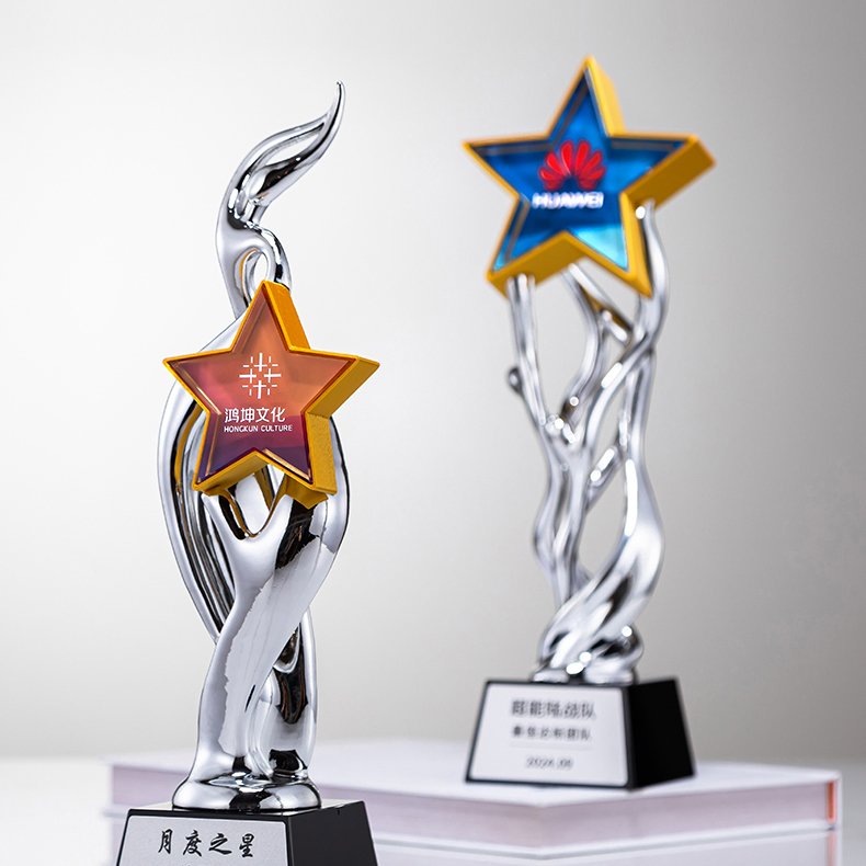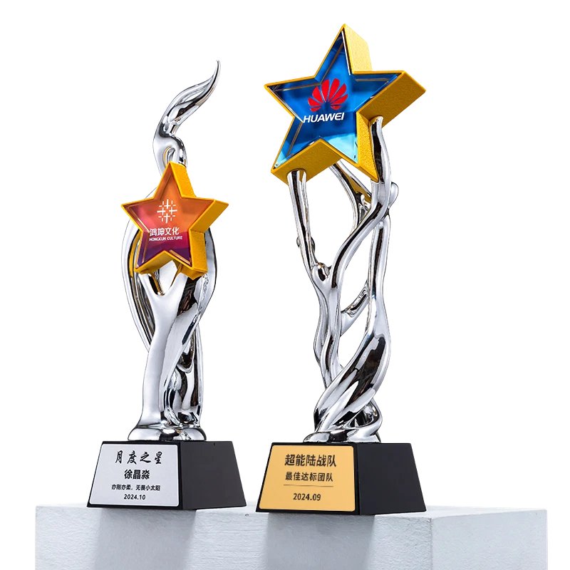 Monthly Best Team Trophies are crafted from a combination of high – quality metals. Aluminum – magnesium alloy is used for the main body, offering a balance between durability and lightweight characteristics. This makes the trophy easy to handle during presentations while ensuring it can withstand the test of time. For the decorative elements, a silver – plated zinc alloy is selected. Zinc alloy’s malleability allows for the creation of detailed team – related emblems, and the silver plating adds a touch of elegance.