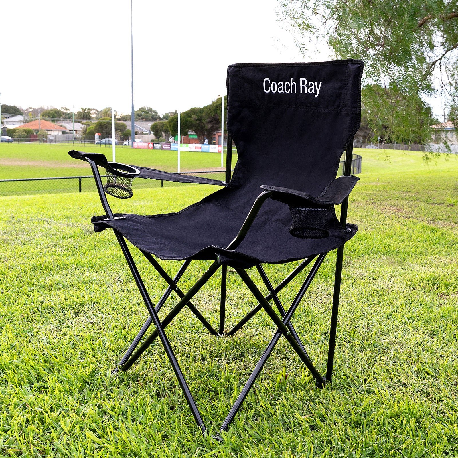 Looking for a unique gift to show appreciation to a sports coach? Surprise them with a personalised sports folding chair designed just for them. Embroidered with their name or nickname. this chair ensures there’s no mistaking whose chair it is. It features a foldable design for easy transport. comfortable armrests. two mesh beverage holders and a matching carry bag.Â