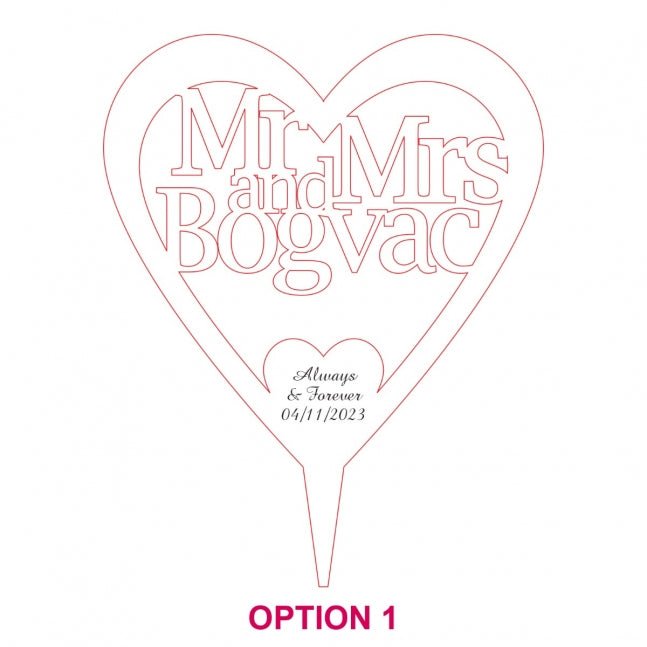 The perfect. personalised touch to your wedding cake. this heart-shaped cake topper will symbolise your enduring love.