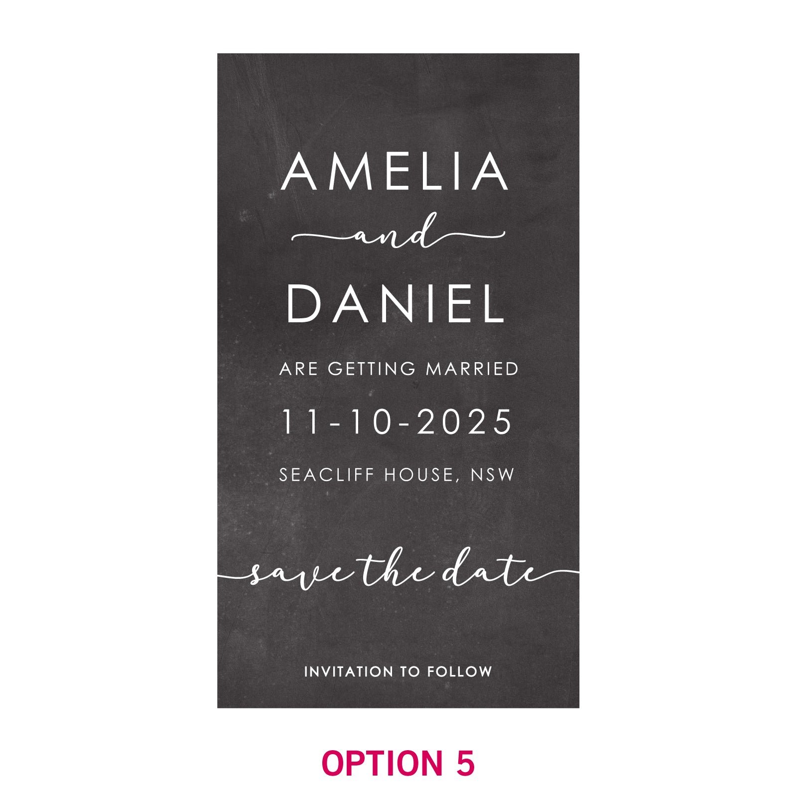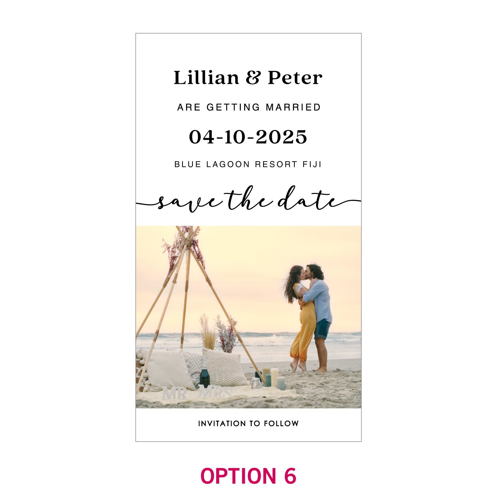 Each ‘save the date’ features a full magnet backing with a durable. non-reflective front design.