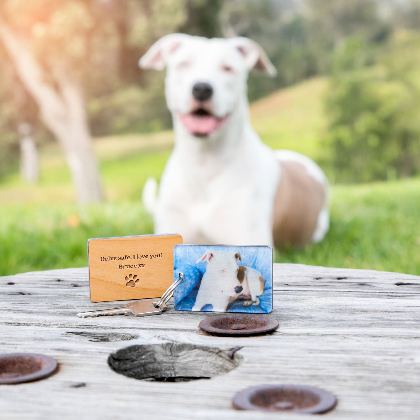 Provide the PF Team with your favoured pet photo and it will be photo printed onto resilient clear acrylic. This is then backed with wood which will be professionally laser engraved with your personal message on the external side.