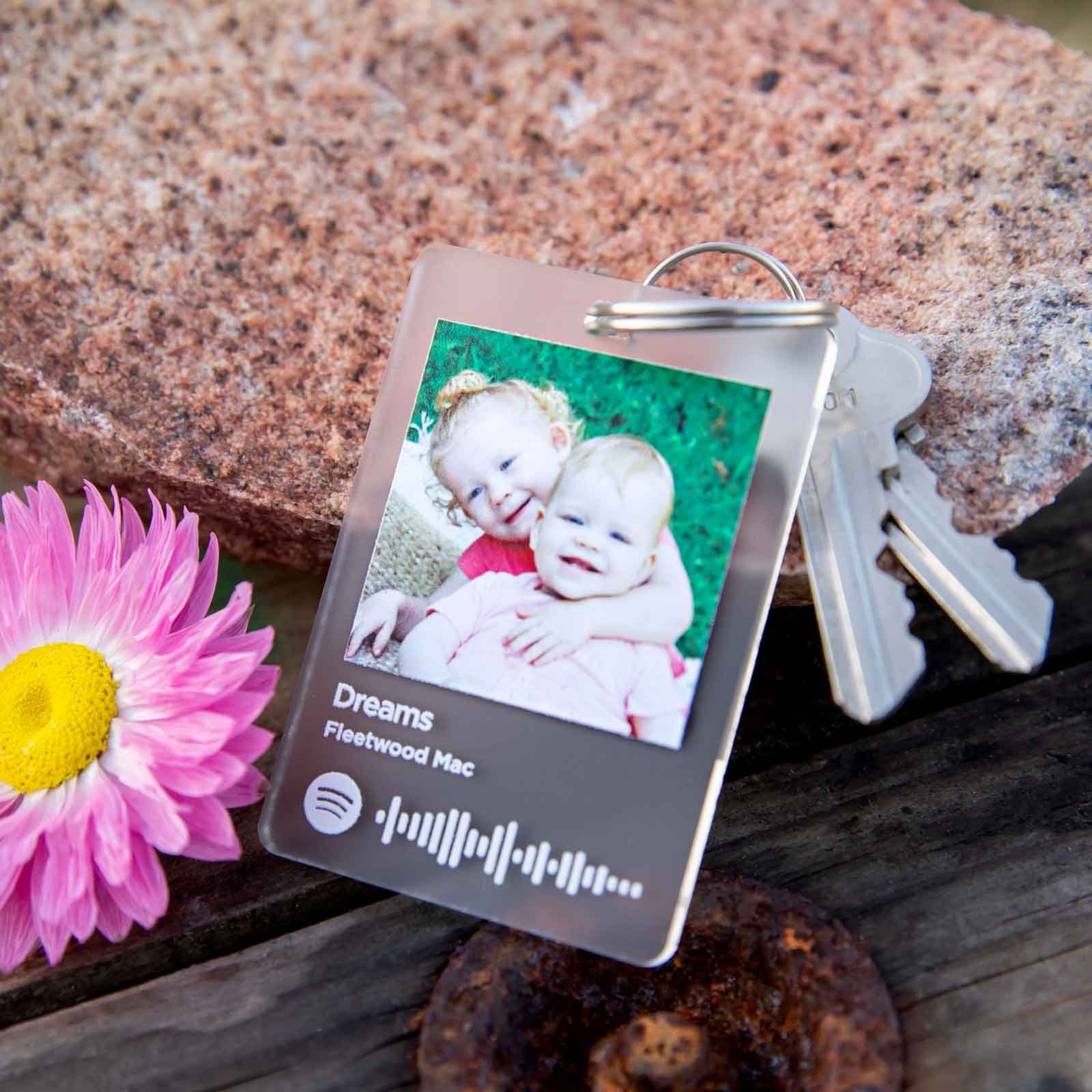 There are many ways to memorialise moments. but none so immersive and transportable as these! Created from 3mm thick frosted acrylic. the tag is then professionally printed with your favourite photograph and selected Spotify song code. so that in a mindful moment you can be taken back to that magical memory in time.