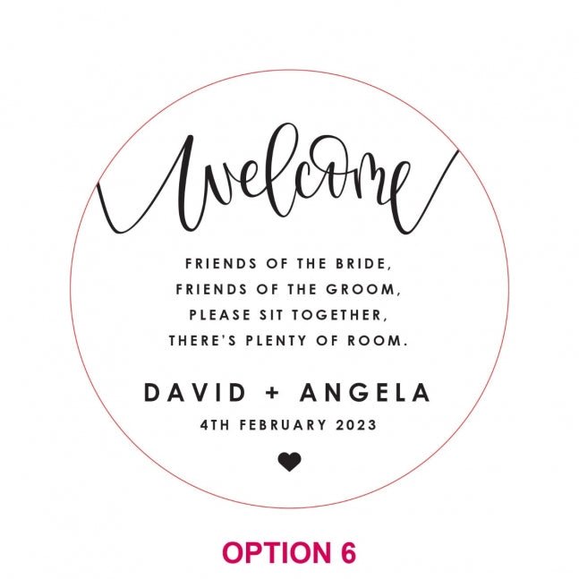 Showcase your individual style and unique identity with this customised 60cm round welcome sign that can feature your own special greeting or welcome message for wedding guests and party goers.