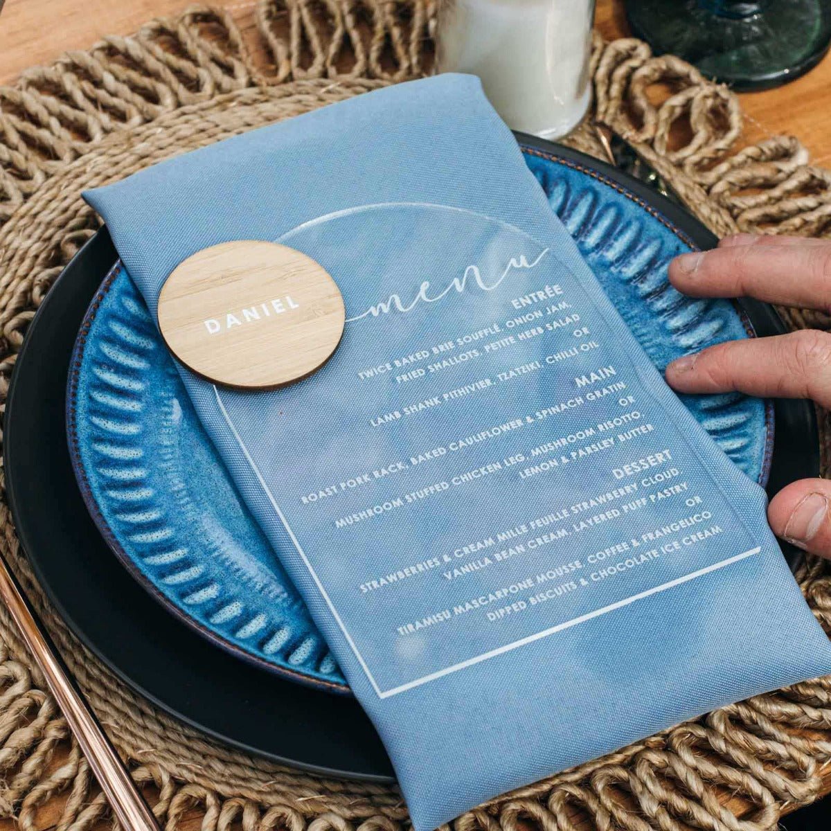 Individually featuring each of your guests’ names in bold. capitalised white text on natural bamboo. these personalised identifiers are easy to spot and read from a distance. They help avoid any chaos or confusion among your loved ones on the day by guiding them to their designated seats and behave as a decent icebreaker to strike up a conversation on the night.