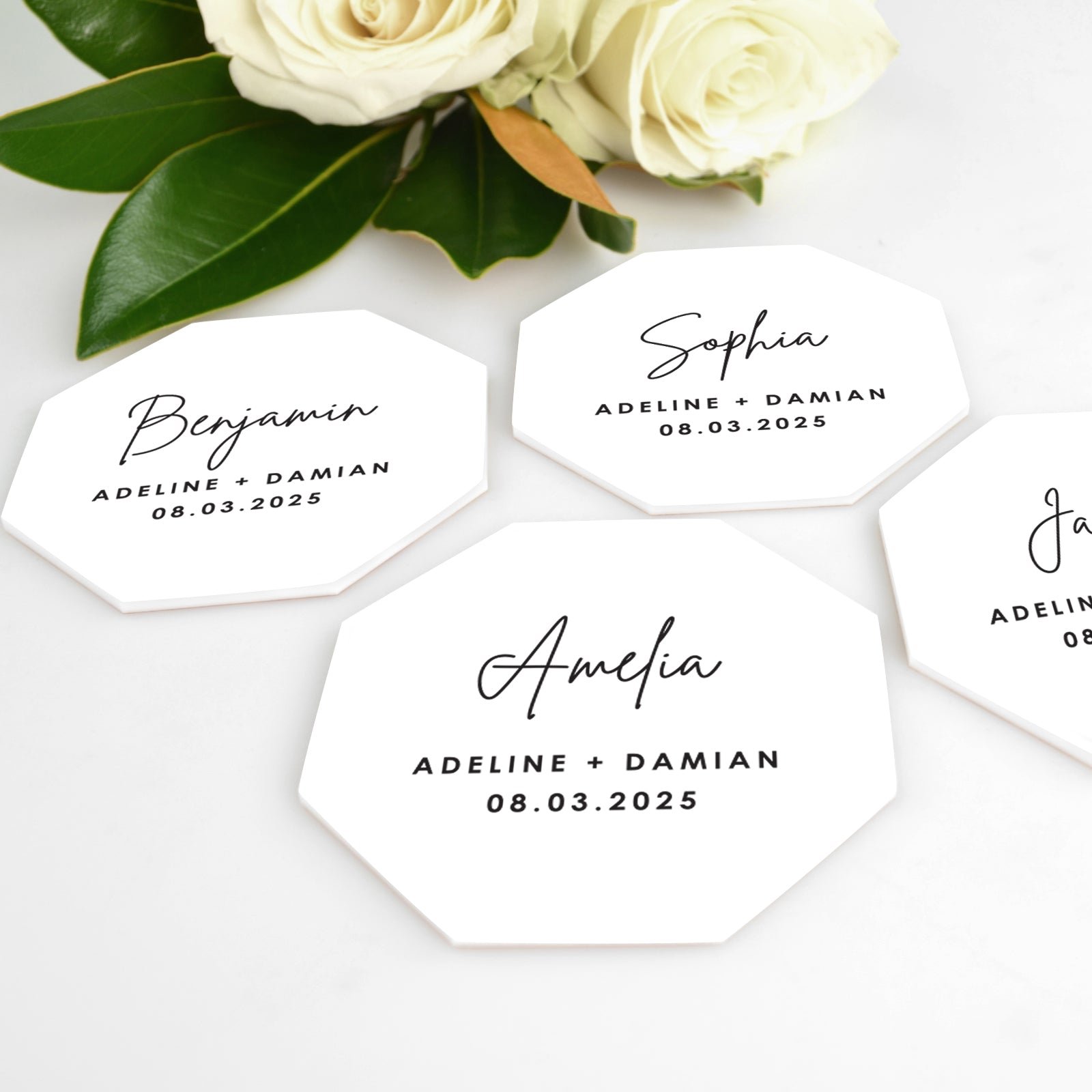 Printed White Acrylic Geometric Octagon Wedding Placecards