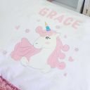 This sweet white unicorn pillowcase is a beautiful and fun way to bring a little magic to your child’s bedroom. made even more special with their very own name printed across the top.