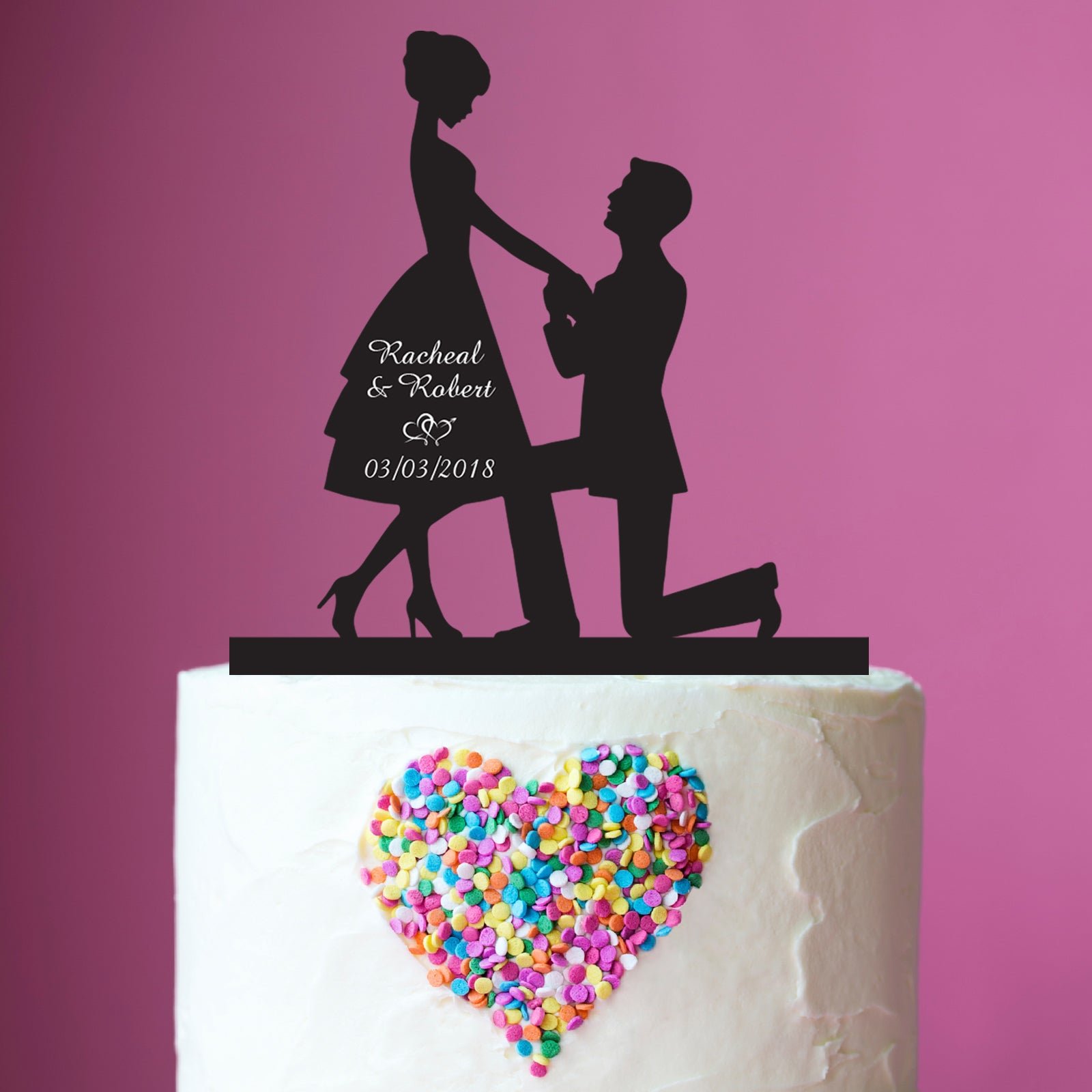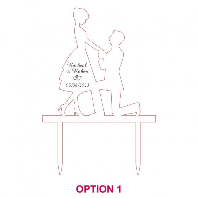 Featuring the timeless silhouette of a marriage proposal. these toppers will take pride of place on your wedding cake.