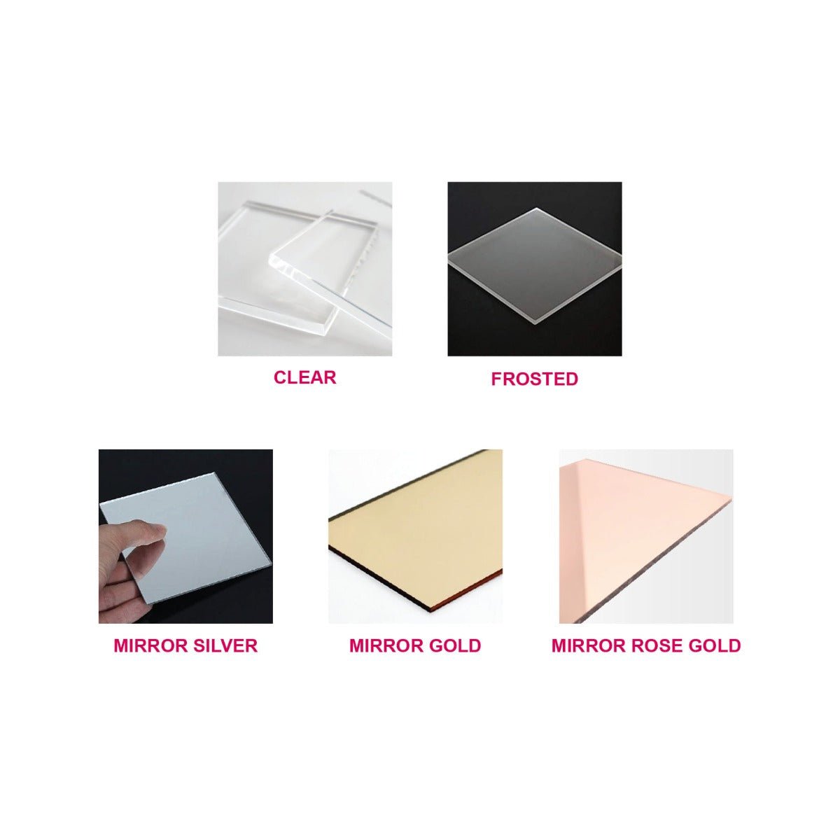 Each one is made from sturdy 3mm acrylic and comes in a great range of colours. including mirror rose gold. mirror silver. mirror gold. clear and frosted. as well as a variety of font styles – so there’s bound to be a combination that will perfectly suit your existing décor and colour scheme.