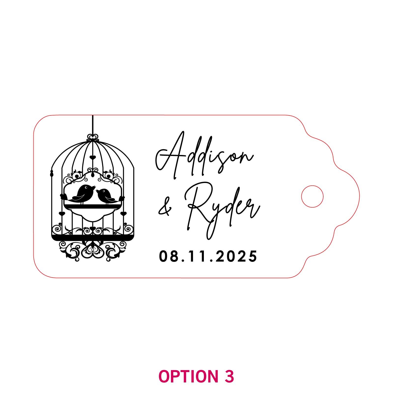 Combined with a wooden engraved gift tag. this rustic-themed bomboniere is the key to a successful wedding celebration.