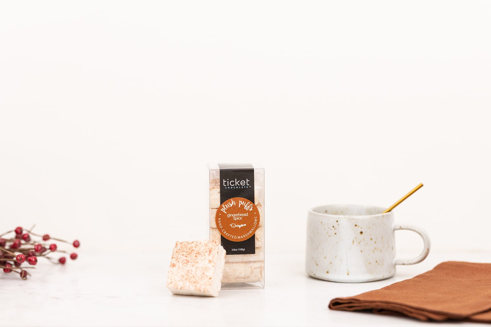 Each package of Ticket Gourmet Marshmallows holds approximately five 2x2x1 treats. They’re a delightful addition to a cup of hot chocolate.  These marshmallows are crafted with only real ingredients. contain no artificial flavors. are gluten-free. and are made without corn syrup.
