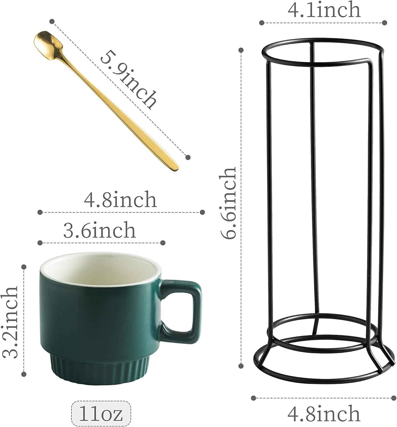 - Perfect Size: 11 ouces is the ideal size for a your morning coffee. And the coffee mug set is enough to serve for 4. Perfect for tea or coffee party. The mug handle is easy to hold. This exquisite set of coffee mug set will accompany you to spend a good day.