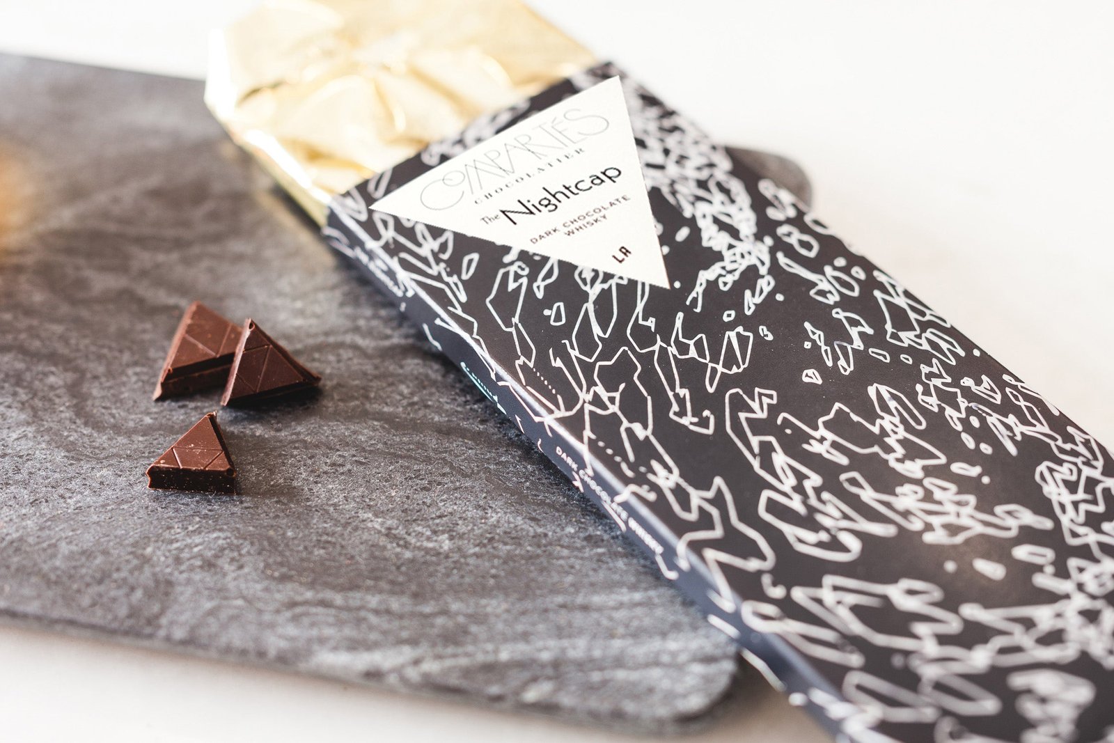 Compartes NIGHTCAP Chocolate bar infused with the finest whiskey. Deep dark chocolate lures you in closer. whiskey chocolate collides in this tempting delight. Taste just a little bit. ah you feel it now? The nightcap is pure whiskey dark chocolate madness.Â