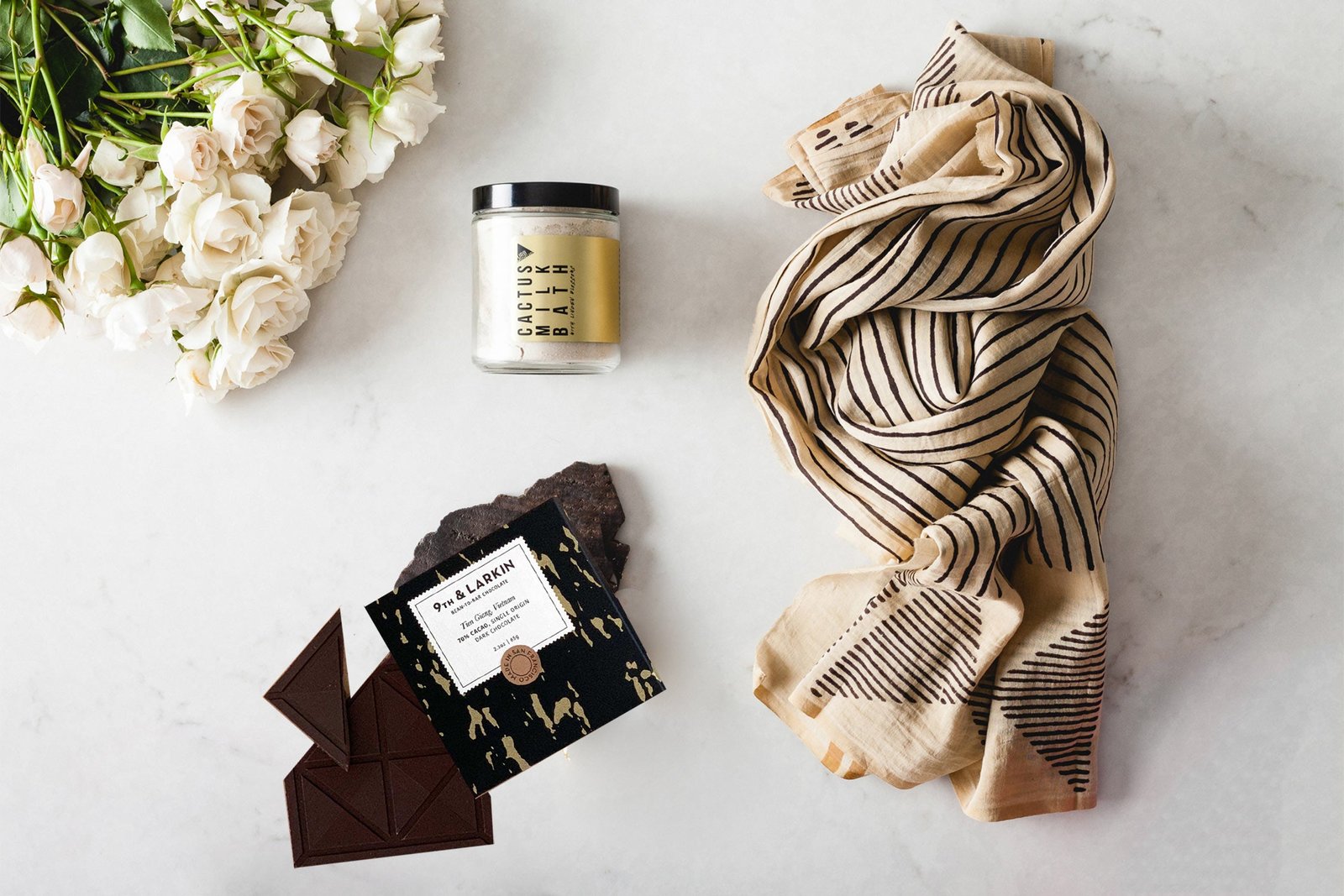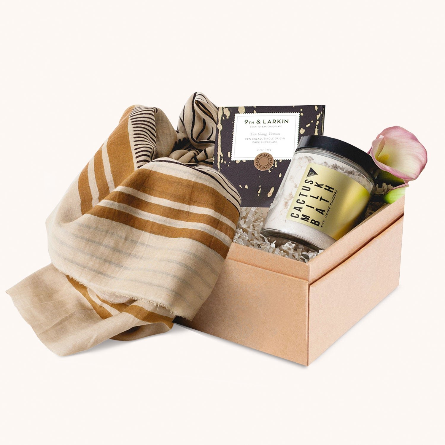 Looking for a gift that’s both thoughtful and indulgent? Look no further than our gift box. featuring a gorgeous handmade block-printed scarf. luxurious bath powder for a relaxing soak. and decadent dark chocolate that’s sure to satisfy any sweet tooth. Whether you’re looking to surprise a loved one or treat yourself to a little bit of self-care. this gift box is the perfect choice. So why wait? Order now and experience the ultimate in relaxation and indulgence!
