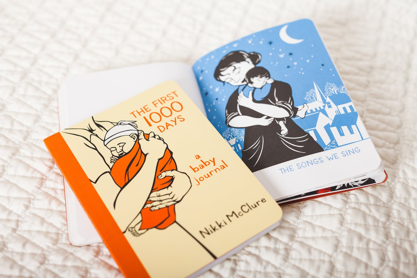 Nikki McClure Baby Book:  Nikki McClure’s beautifully detailed illustrations divide this lovely baby journal into sections celebrating the first 1.000 days of life. Modeled after the journal the author started when her son was born. the sections focus on recording a child’s interaction with the natural world. including baby’s first tree. moon. and garden.