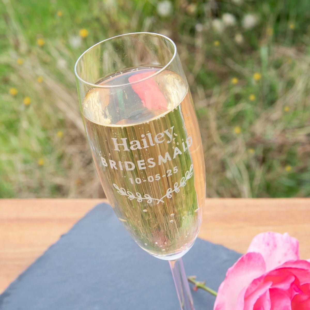 Heartfelt or humorous — whatever way you choose to ask. do it in style with a fun. personalised Bridal Party Acceptance Champagne glass.