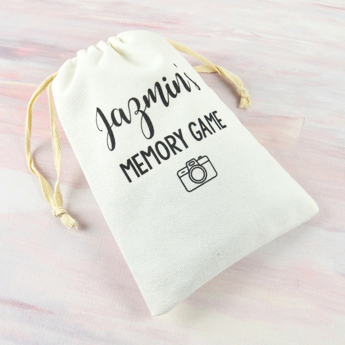 The photo memory game is an exciting and engaging matching game for children. The game includes 12 wooden pieces and a drawstring bag for keepsake. Your photos are professionally printed onto 2.5mm bamboo and laser cut into a circular shape. The photos can be of your child. a mix of family and friends or even your pets. The gift bag is personalised with the child’s name so it makes a special birthday gift that they will treasure forever.